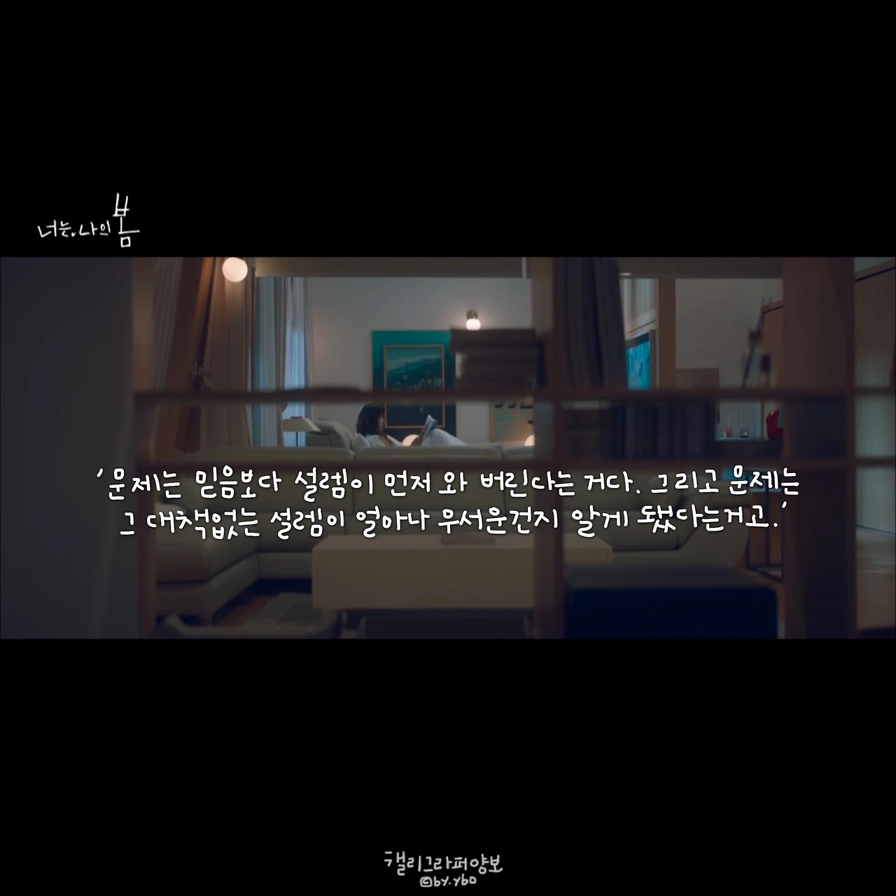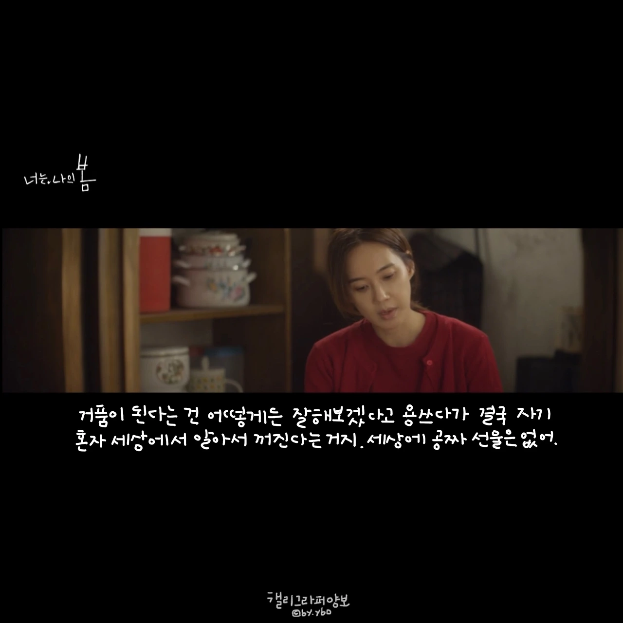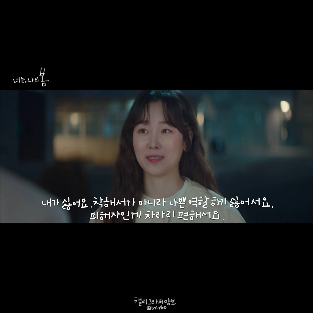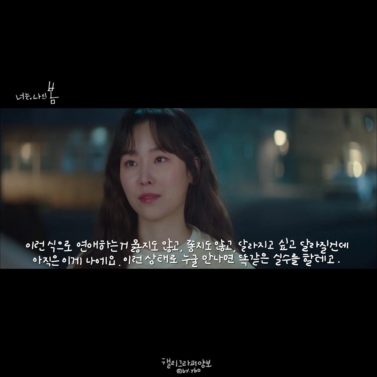 그녀가 작품을 잘 선택하는 건지, 아니 그녀가 각 캐릭터 속에 있는 ‘(저마다의) 나’를 잘 꺼내 연기하는 까닭인지 둘 다-겠지만. 사랑이 왜 무서운 건지, 설렘조차 시작하지 못하는 이유가 아직은 내가 상처투성이라서라는 걸, 나는 강다정을 통해 또 들키고 만 것 같다�