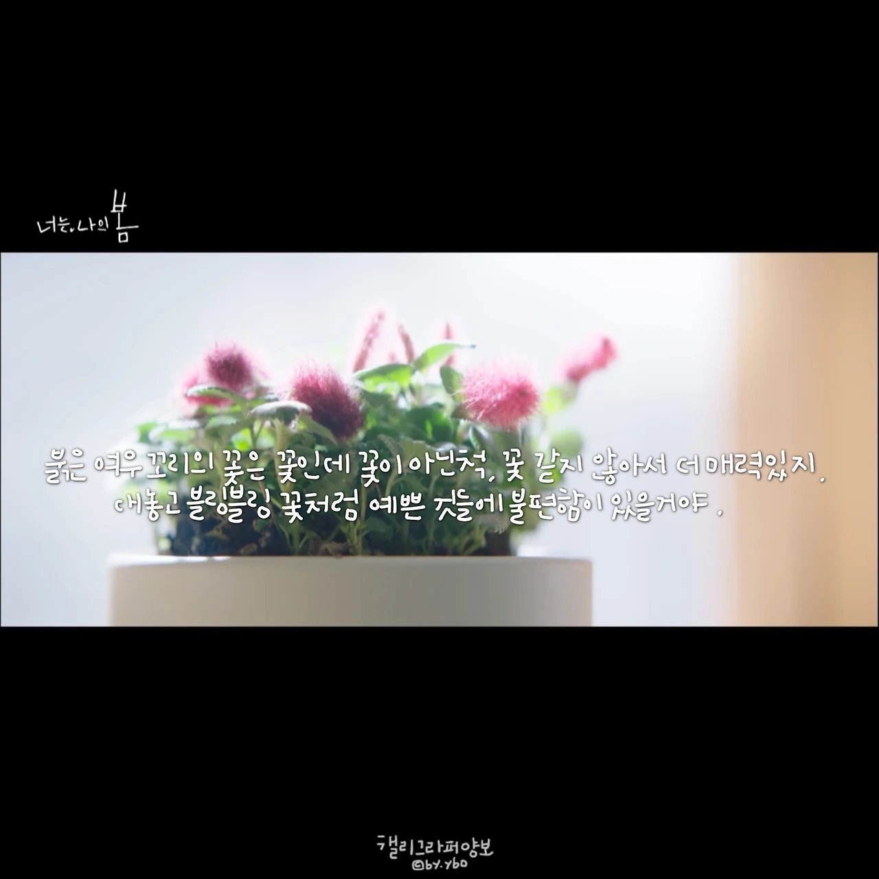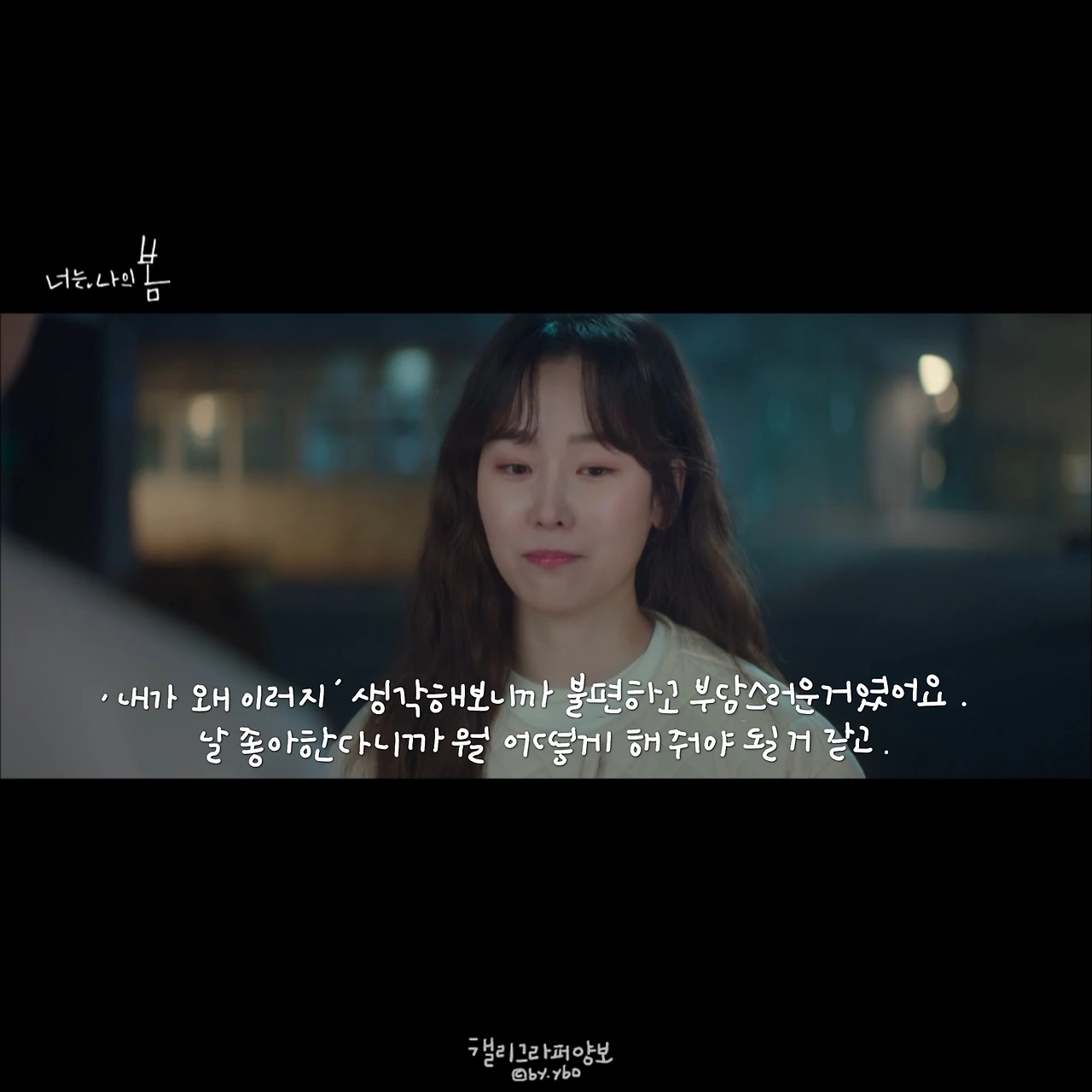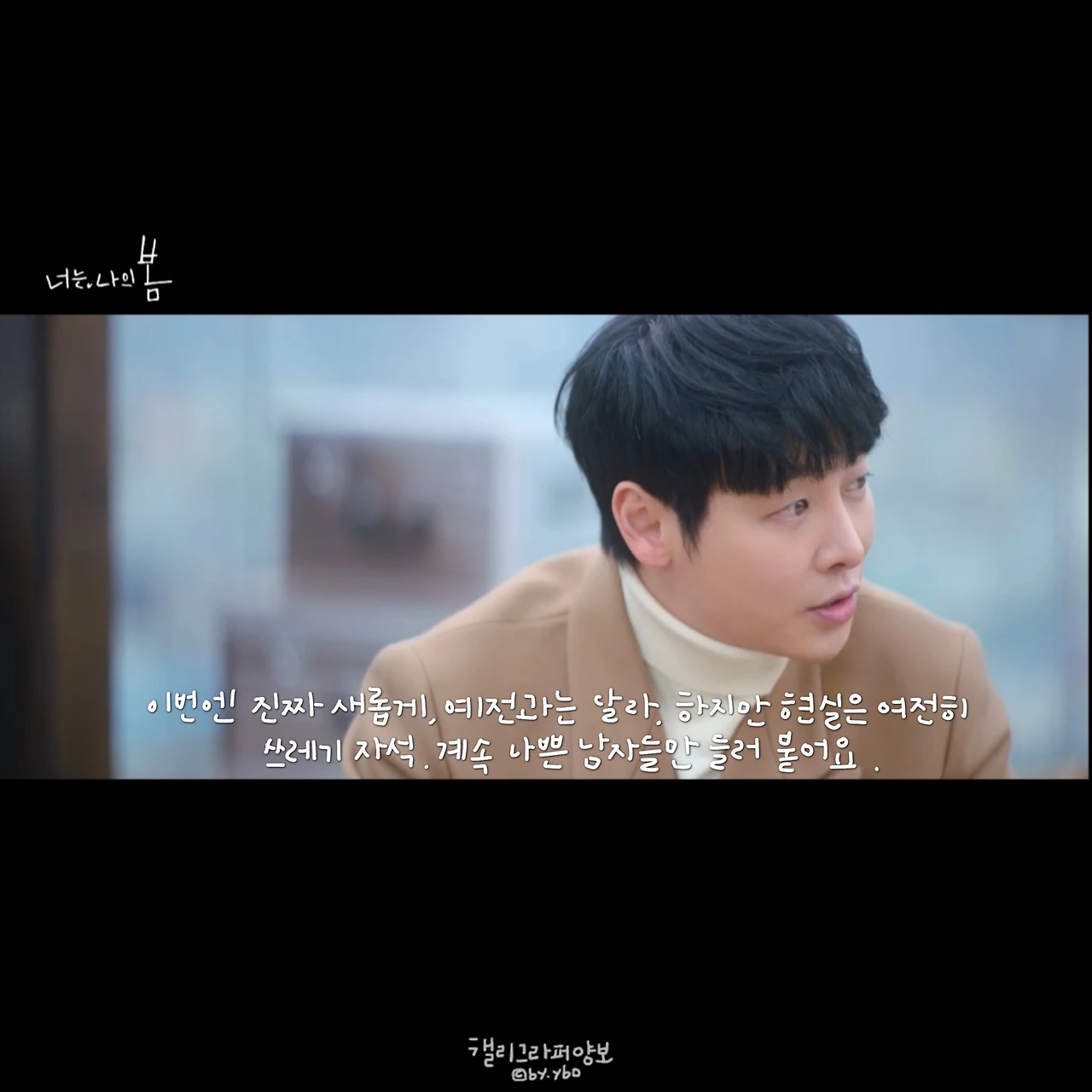 서현진 배우의 작품을 좋아하는 건, 그러니까 믿고 보는 건 그녀가 연기하는 캐릭터들엔 언제나 내가 있기 때문이다. ‘사랑의 온도’에서는 나이와 사랑하는 감정 사이에 고민하는 내가, ‘뷰티 인사이드’에는 내 속에 너무 많은 나 자신을 숨기고 싶은 내가, ‘너는 나의 봄’에서는 행복해지고 싶지만 아직은 이게 나인, 내가 있다. 날 좋아한다니, 뭐라도 해줘야 할 것 같은 그 마음과 달라지고 싶지만 그럴 테지만 아직은 이게 나라고 말하는 다정이 앞에 나는 또 한 참을 서 있었네.