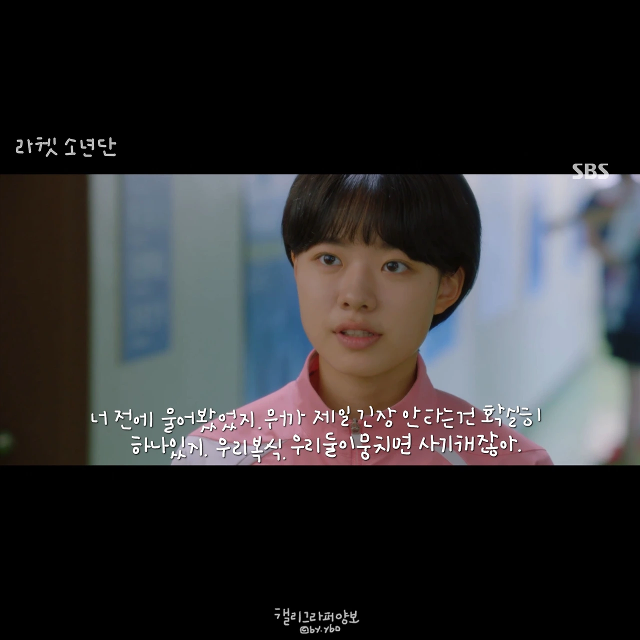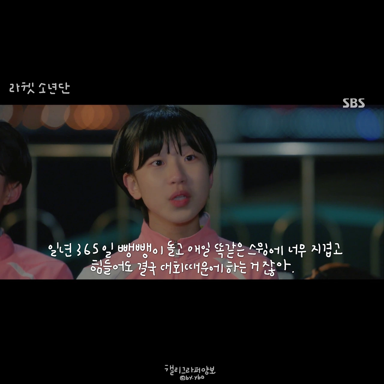 시청할 드라마를 선택할 때 작가 이름을 가장 먼저 확인한다. 대체로 대사가 좋은 드라마는 전달하려는 메시지도 좋기에 대사가 좋았던 작가를 기억하고 있다. 드라마 <라켓 소년단>(2021, SBS)은 <슬기로운 깜빵 생활(이하 ‘슬빵’>(2017, tvN)을 집필한 정보훈 작가님의 작품이다. ‘슬빵’을 볼 때도 느꼈지만 정보훈 작가님은 어떤 환경, 시선을 벗어나 한 사람의 이야기를 전해주고 싶어 하는 것 같다. '슬빵'에서는 교도소라는 미지의 공간에 대한 시선을, <라켓 소년단>에서는 열여섯이라는 나이가 주는 선입견을 넘어 '한 사람'이 갖고 있는 이야기를 들려준다.