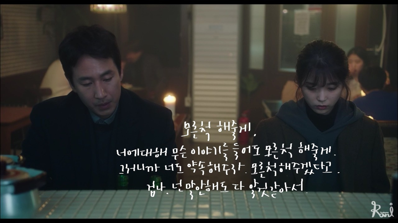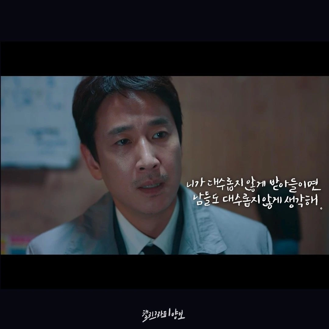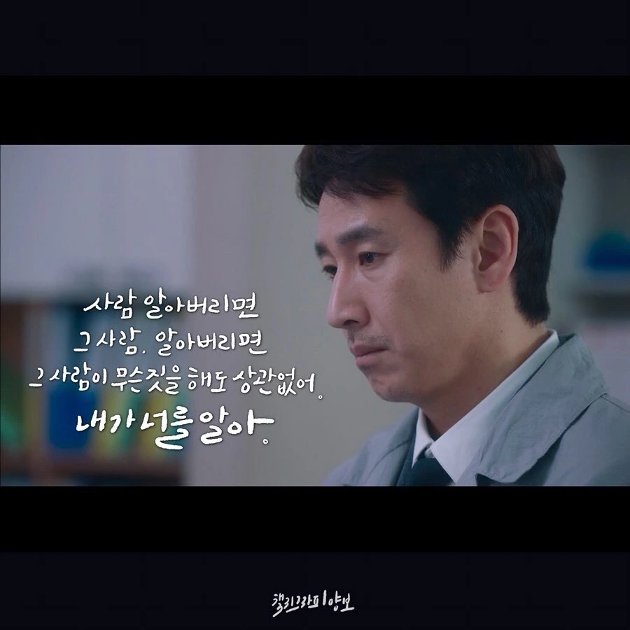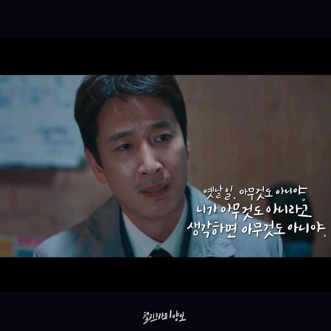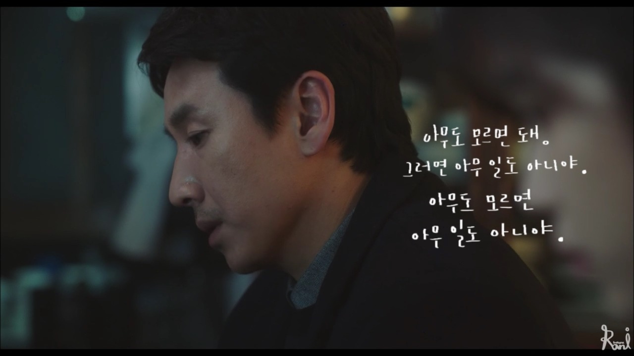 “어른 하나 잘 못 만나서...” 동훈(이선균)의 대사에서 아직 다 자라지 못 한 지안이, 광일이, 기범이의 아저씨가 되어주려 함을 느꼈다. 동훈의 이러한 어른스러움은 지안을 밝은 낮에 웃으며 살 수 있게 해 주었고, 아마 광일이와 기범이도 또 다른 ‘어른’으로 자랄 수 있게 해 주었을 것이다. 뭉클 ㅠ
