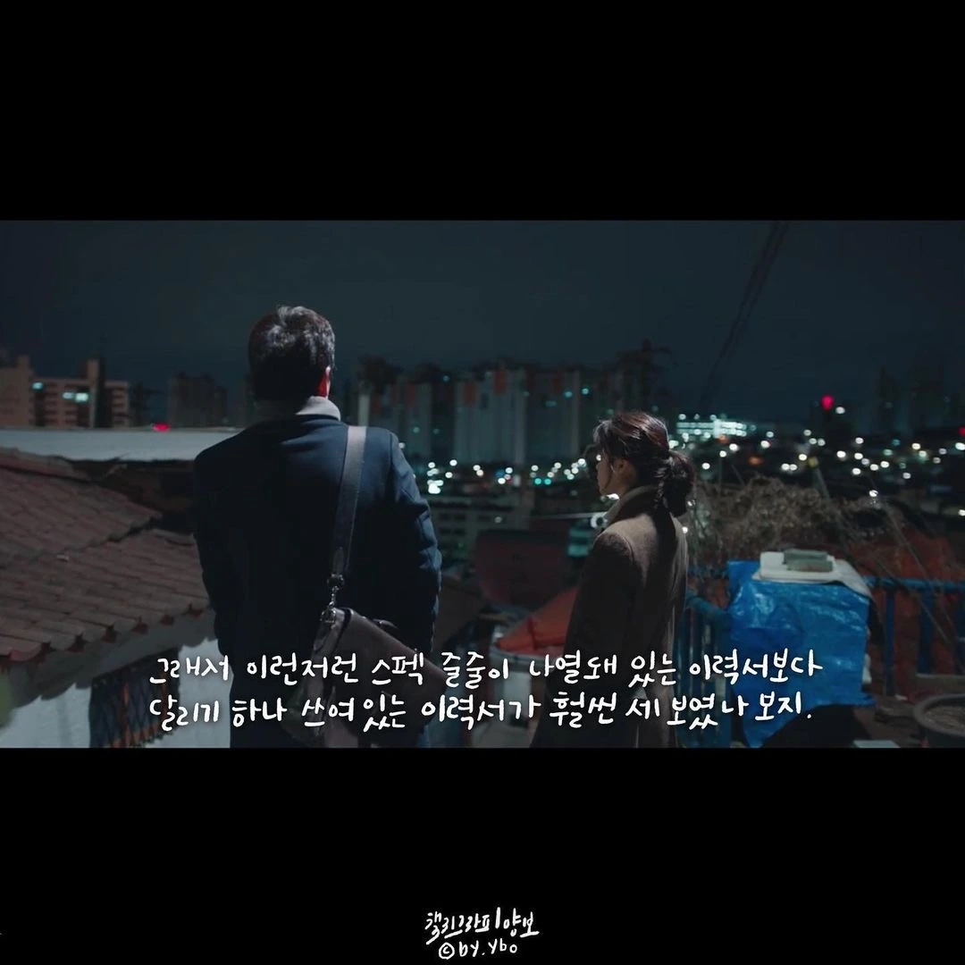'나의 아저씨' 중 가슴에 남은 대사 TOP3가 있다. 그중 하나. 이 대사를 만난 뒤 나의 글에, 생각에 자주 떠오르는 말이 되었다. 동훈은 팀 잡무를 담당할 계약 직원을 뽑을 때, 특기가 달리기인 별거 없는 지안의 이력서를 선택했다. 나중에 그는 왜 별거 없는 지안을 뽑았냐며, 둘이 무슨 관계가 아니냐는 기분 나쁜 의심을 받기도 했다. 동훈은 화려하게 포장된 이력서가 얼마나 거품인지, 그동안 겪어서 알고 있었다. 오히려 꾸밈없는 지안의 이력서가 솔직해 보였다. 끈기가 느껴졌다. 그는 겪어 보고 생각하려는 사람이었다. 자기 뒤에서 험담을 한 팀원도 '죄송합니다' 열 번을 외치게 함으로 용서해줬다. 투덜이긴 했지만, 진심으로 자신을 미워하지 않는다는 걸 그동안의 시간으로 동훈은 알고 있었기 때문이다..