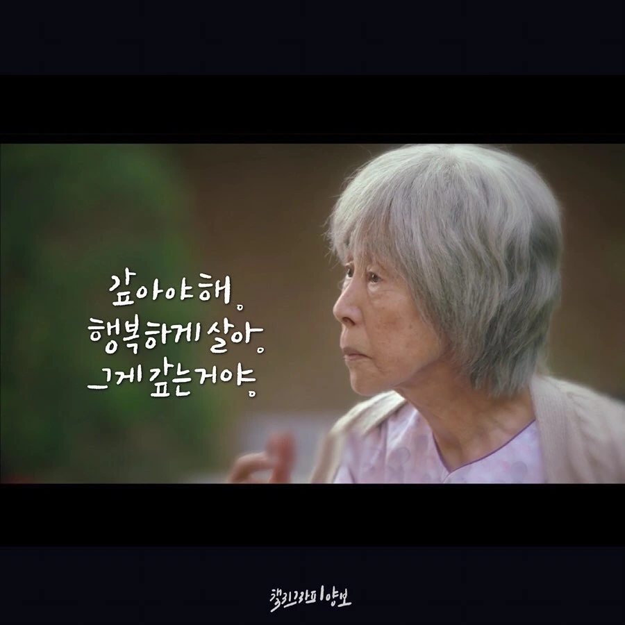 이 대사와 함께 ‘나의 아저씨’에서 지안을 보내며 마지막 유언처럼 남긴 할머니의 대사가 생각난다. 잘 살아내는 가장 큰 보답..