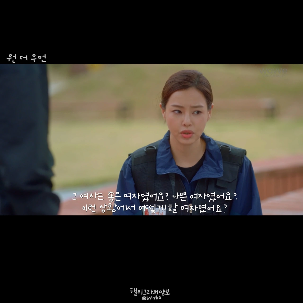 음모와 사고 그로 인한 기억상실 그리고 사실 쌍둥이 일지 모른다는 출생의 비밀까지, 소위 말해 막장 드라마에서 볼법한 요소를 두루 갖춘 드라마지만, 이 드라마에 ‘막장’이란 장르를 붙이는 사람은 없다. ‘이하늬’ 배우가 보여준 사이다가 감미된 코믹적 요소가 더 크게 다가가기 때문이다. 처음 드라마 <원더우먼>의 대사를 인스타그램에 올렸을 때 반응이 기존에 내가 작업해오던 작품들과 결이 다르다는 것과 우당탕탕 만 있을 줄 알았는데 멜로도 있었냐는, 생각했던 것과 다른 ‘낯섦’을 느낀 반응이었다. 하물며 드라마도 보는 이에 따라 다른 장르가 되는데, 그게 한 사람이라면 우린 치열하게 헤아리는 노력을 멈춰서는 안되지 않을까. 언제나 지나친 해석이 아닐까 싶지만 기획의도를 보고 조금 안심했다. 부디 나의 치열함이 작가의 의도를 헤아린 일이라 생각하며. 이 긴 글을 읽는 당신의 시선은 나를 향한 치열함일 수도 있다는 행복한 상상으로 글을 마친다.