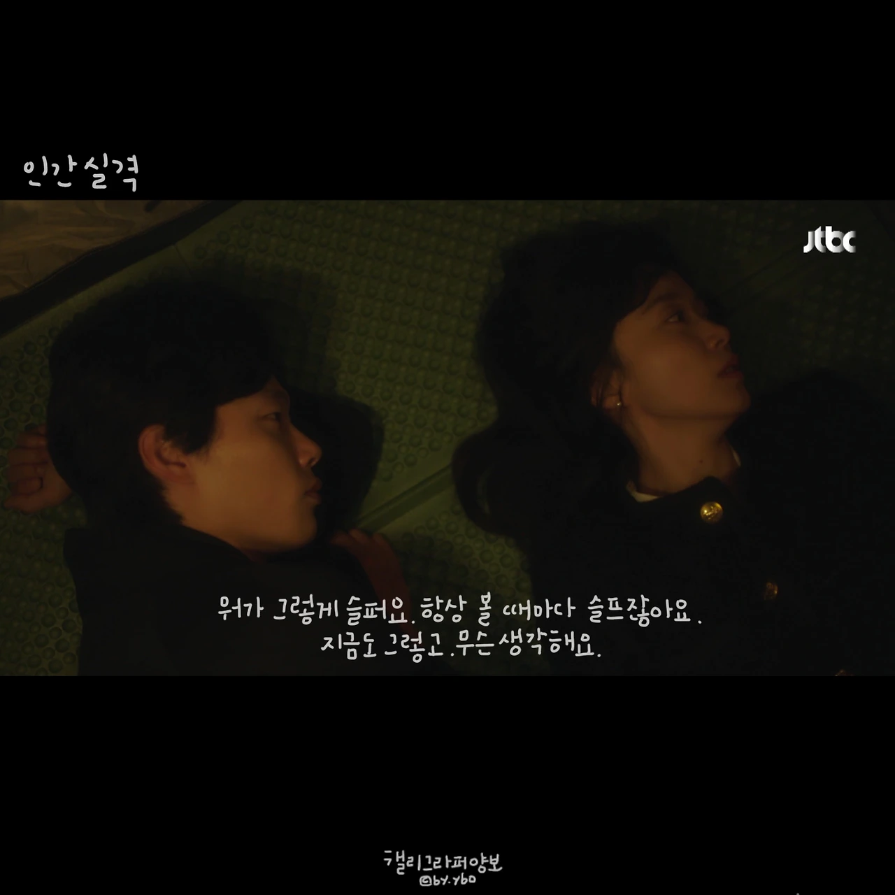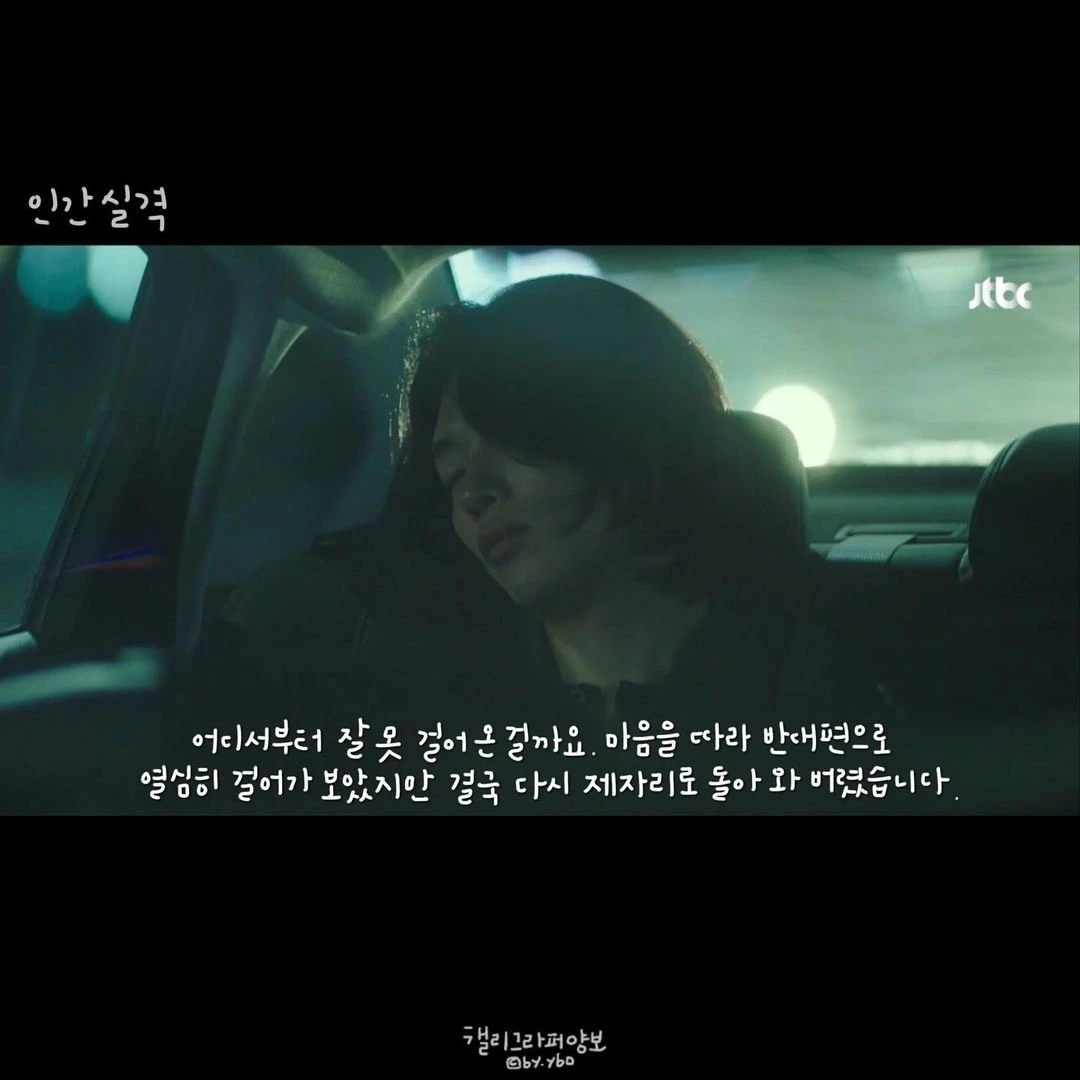 드라마 <인간실격> 인물 소개를 보면 이름에 ‘성’이 없다. 부정, 강재, 장수, 경은, 딱이, 민정 그렇다. 어떤 의미가 있는지 정확히 알지 못 하지만, ‘성’이 없다는 게 내겐 특정한 누군가의 일이 아닌, 우리가 한 번쯤은 해봤을 생각이고, 내 이야기가 될 수 있는 감정일 수 있다는 것을 담은 게 아닐까 생각해봤다.