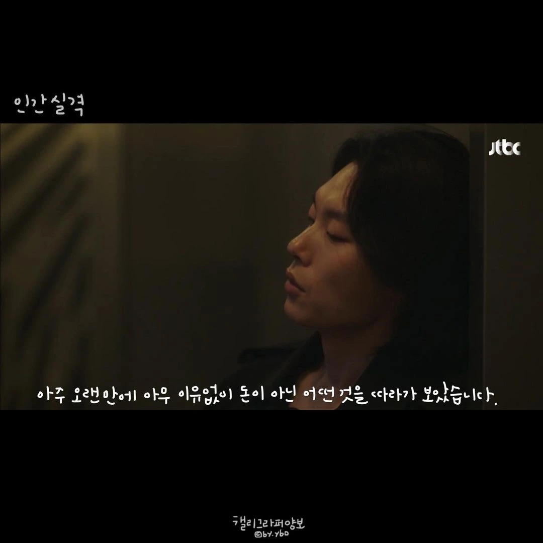 무엇이 되고 싶고, 무엇이 되려 하는 내네의 시간이 우리가 살면서 끝없이 하게 되는 본능적인 일이 아닐까. 이 드라마를 보며 강재와 부정처럼 돈이, 직장이 나인 것 같은 착각을 하기도 하지만 그렇게 무엇이 되는 것보다 무엇을 하느냐가 먼저였다는 걸 알게 해 줬다. 그에 따라 무엇이 될 때, 의미가 생긴다고. 긴 인생길에 서로에게 의미가 되는 존재가 단 하나라도 있다면 우린 인간성을 상실하지 않을 수 있음을.