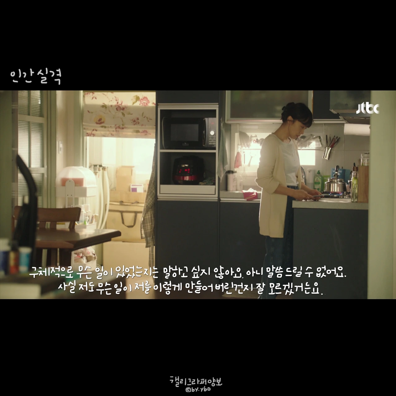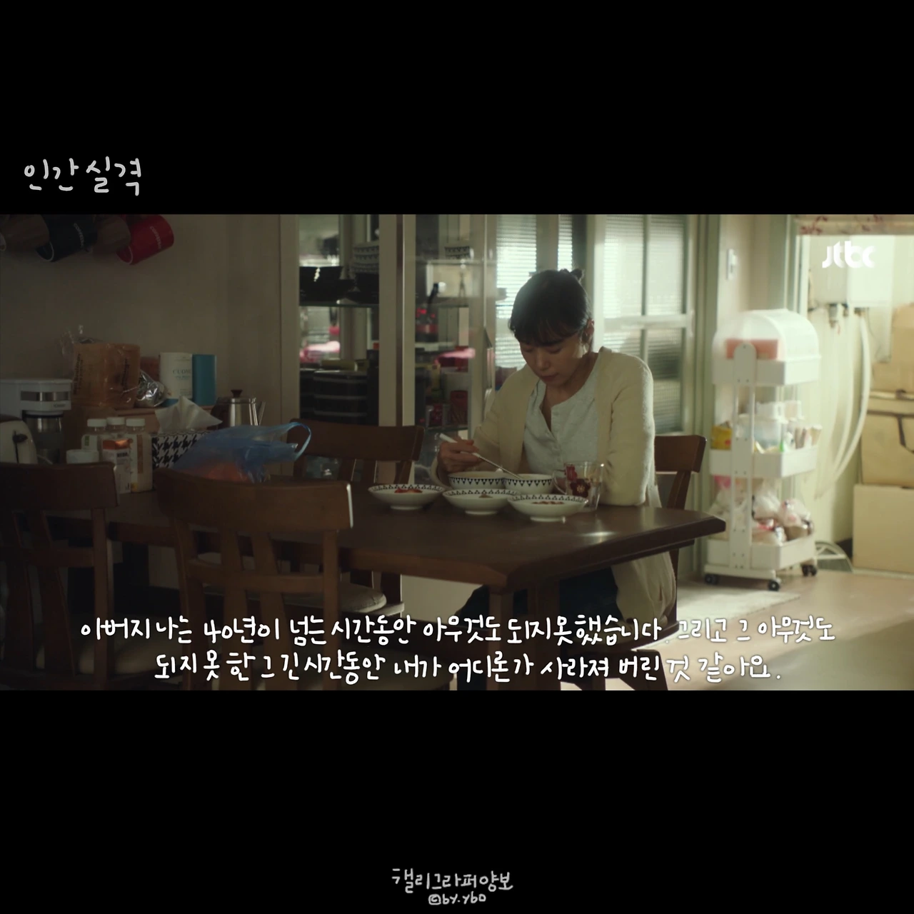 부정이 드디어 자신 속에 있는 마음을 꺼냈다. 꾹 담은 입술을 열었다는 건 그 마음을 열었다는 것과 같다. 부정은 분주하게 헤매는 발걸음을 멈추고 그 순간을 맞이할 기다림을 시작한다. 그게 무엇인지 정확히 말할 수 없지만 사실 알 것도 같다. 정확히 무어라 말할 수 없지만. 코멘트를 썼다 지웠다 하게 하는 드라마다. 사실 이 코멘트보다 부정의 독백 같은 고백을 몇 번 더 읽어봤으면 좋겠다.