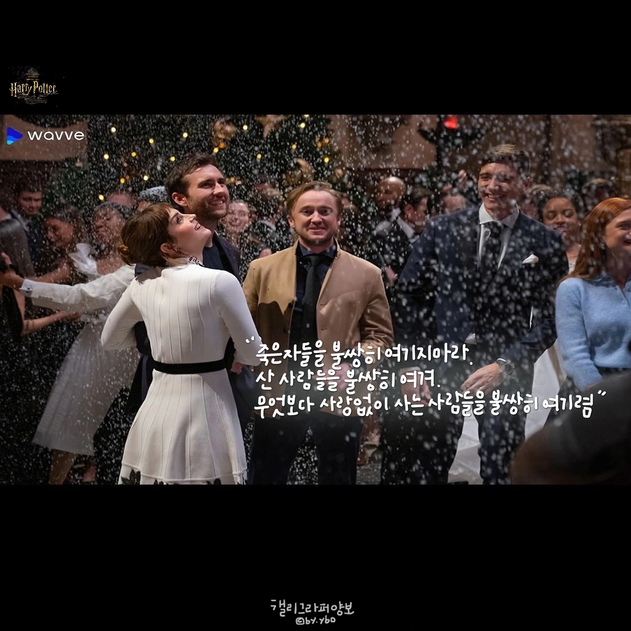 “죽은 자들을 불쌍히 여기지 마라. 산 사람들을 불쌍히 여겨. 무엇보다 사랑 없이 사는 사람들을 불쌍히 여기렴.” -해리포터와 죽음의 성물, 덤블도어