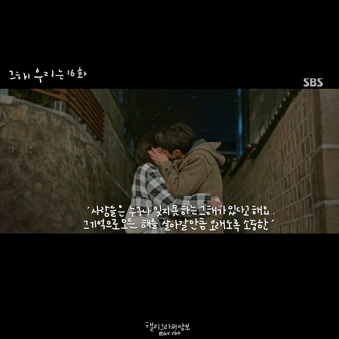 <그 해 우리는> 은 시청하는 그 순간보다 보고 난 후에 마음의 일렁임이 컸다. 주인공의 심리를 색감을 통해 그려낸 감독의 연출적 비하인드를 알고 보니 그냥저냥 풋풋한 이야기가 아니었구나, 마음이 일렁이던 이유를 알 듯 했다. 봄부터 겨울까지 4계절을 다 담고 있는 이 드라마는 언제 꺼내보아도 좋을 듯 하다.