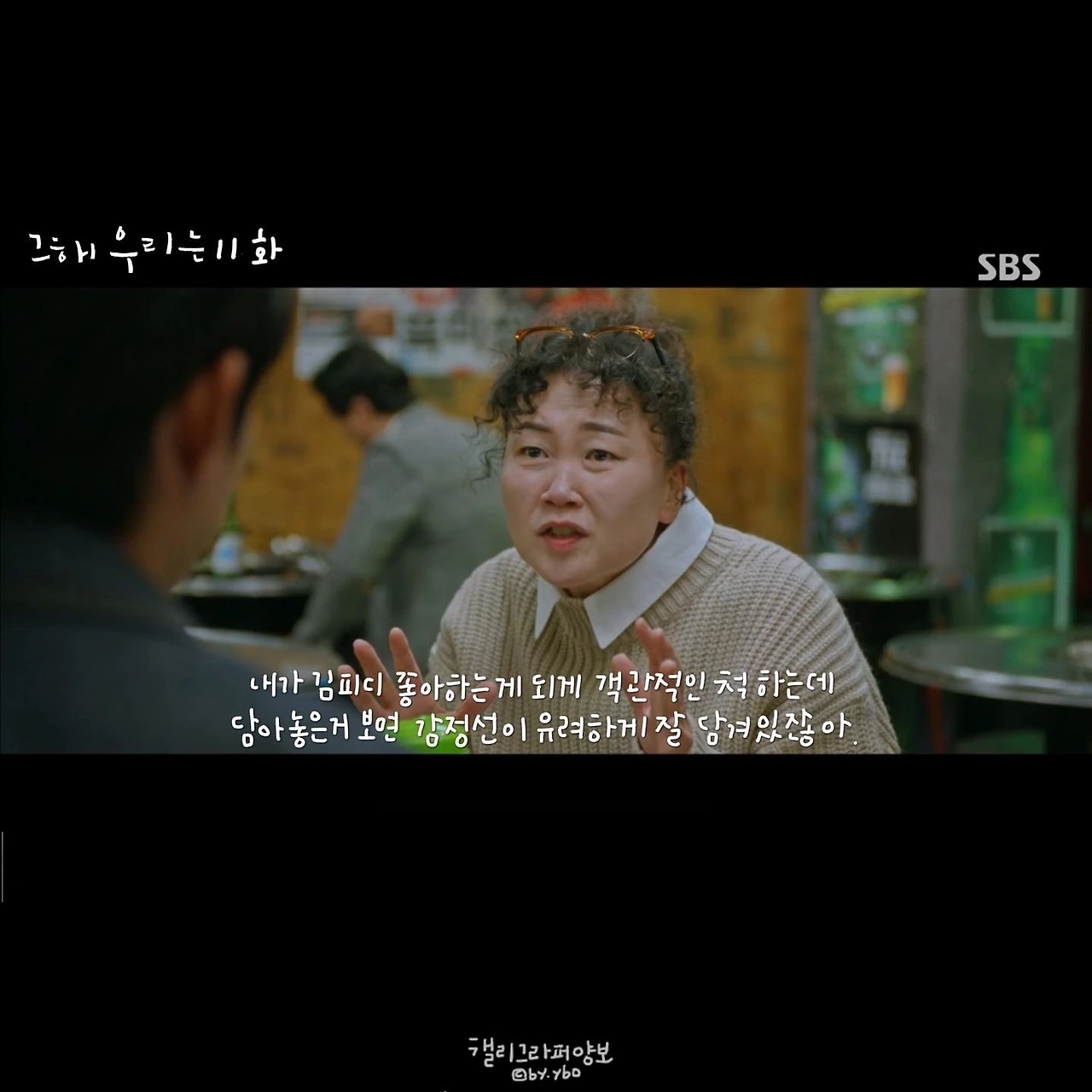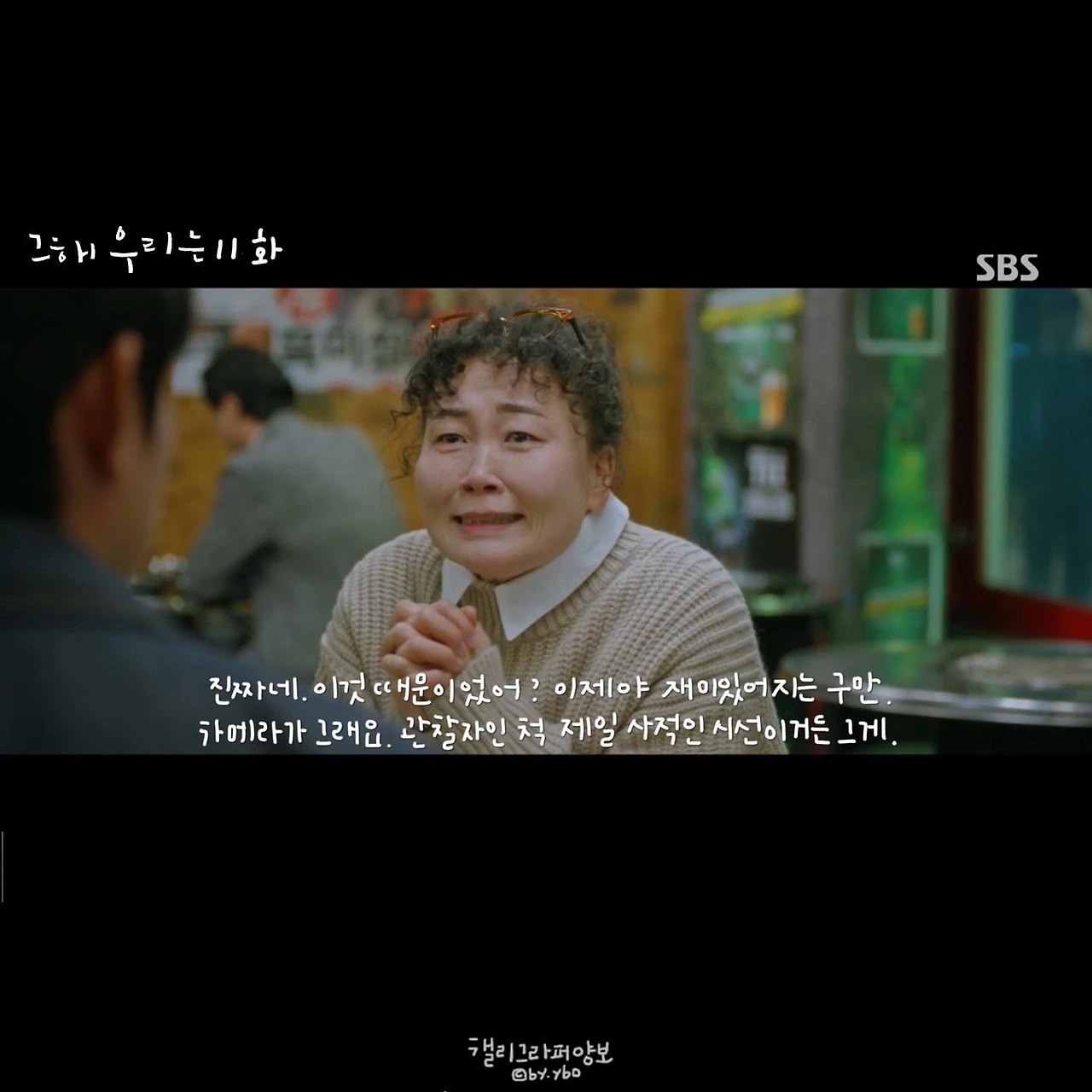 출연자의 일상이 주인공이 되는 다큐멘터리는 그 안에 '별거 없는 우리 일상까지 더해'질 때 그제야 바로소 '아 이게 사람 사는 이야기구나' 작품이 완성된다고 했다. 연수와 웅, 지웅의 시선을 따라가던 시청자인 우리는 자연히 그들의 시선을 받아 각 자의 삶으로 가져왔다. 그렇게 '별거 없는 우리 일상까지 더해'지니 <그해 우리는>은 단지 드라마가 아니라 사람 사는 이야기로 완성되었다.