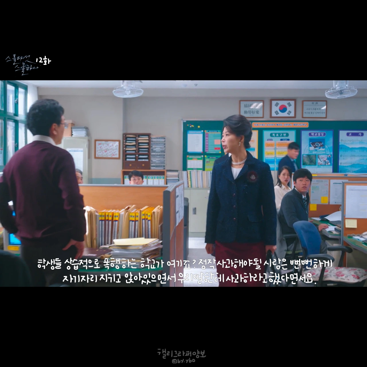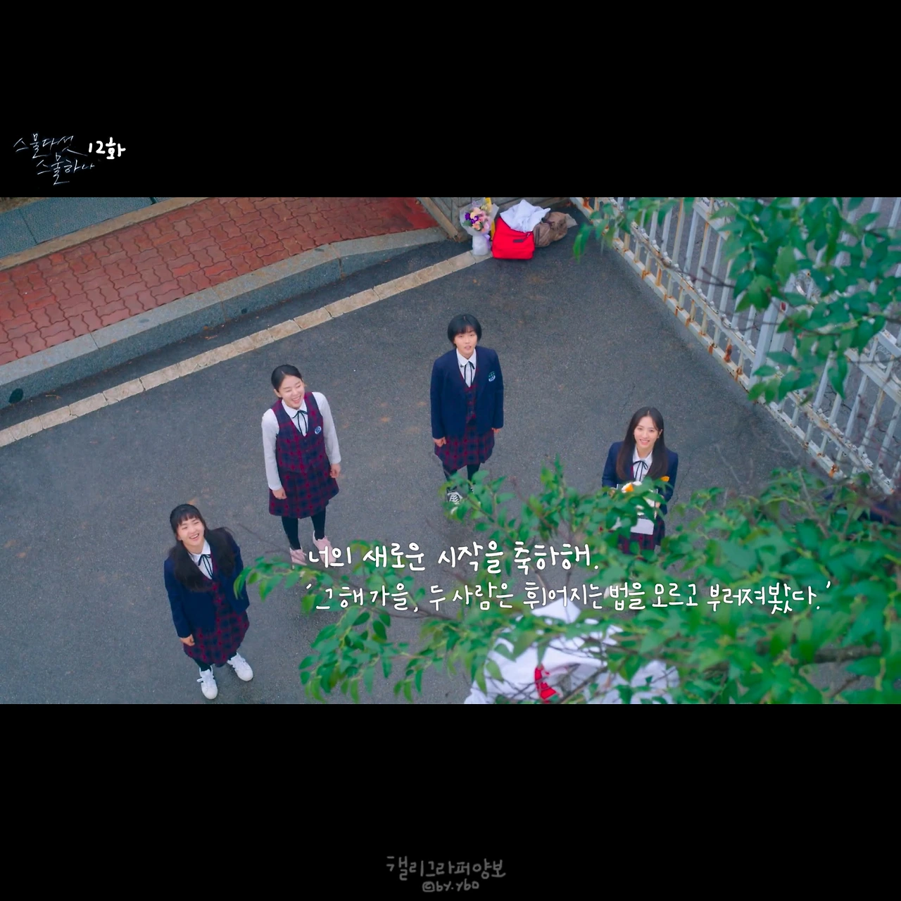 승완과 예지가 마지막으로 학교를 나서는 순간도 쉽지 않았다. 평소와 다르게 굳게 잠겨 있는 교문을 두 사람은 서로를 밀어주고 끌어당겨주면서 교문을 넘어 나왔다. 사실 교문을 잠근 건 희도와 유림이 짓이었지만, 여러모로 쉬운 엔딩이 아닐 수 없다. 이런 두 사람에게 ‘휘어지는 법을 모르고 부러져봤다’고 말하는 내레이션만 있었다면 앞서 잘 쌓인 메시지가 무너졌을 텐데, 교문을 걸어 잠그고서 희도와 유림이 준비한 건 두 사람의 새로운 시작을 축하해주는 일이었다. 케이크에 초를 꼽고 두 사람을 향해 화사하게 “너의 새로운 시작을 축하해”라고 말하는 장면은 희도가 그만두고 싶다며 우는 예지에게 “힘들었겠다, 몰라줘서 미안해”라고 말한 장면과 함께 오래 기억에 남을 것 같았다. 글의 맨 앞에 있는 문장은 이 장면 속 대사다.