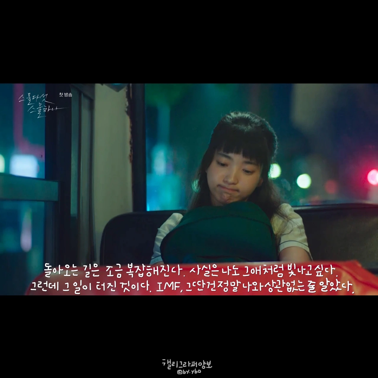 하찮은 고민을 할 수 있는 게 행복이었다는 걸, 시간이 오래 지나 알게 되었다. 하지만 나이의 문제 일가. 갑자기 오늘 어떤 양말을 신을지 아침마다 진지하게 고민한다던 구달 작가님 <아무튼, 양말(제철소, 2018)>의 글이 떠올랐다. 오늘은 홈런볼을 먹어야지. 어젯밤부터 해온 고민이다. 이런 하찮은 고민 하나 둘 곁에 두는 게 마음을 달래는 일이 될 줄이야. 열여덟이 된 기분이다. 지난 걱정을 그리워할 줄이야. 이 드라마의 정서라는 걸, 다 지난 지금은 알겠다.