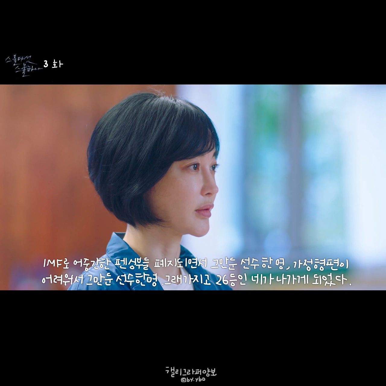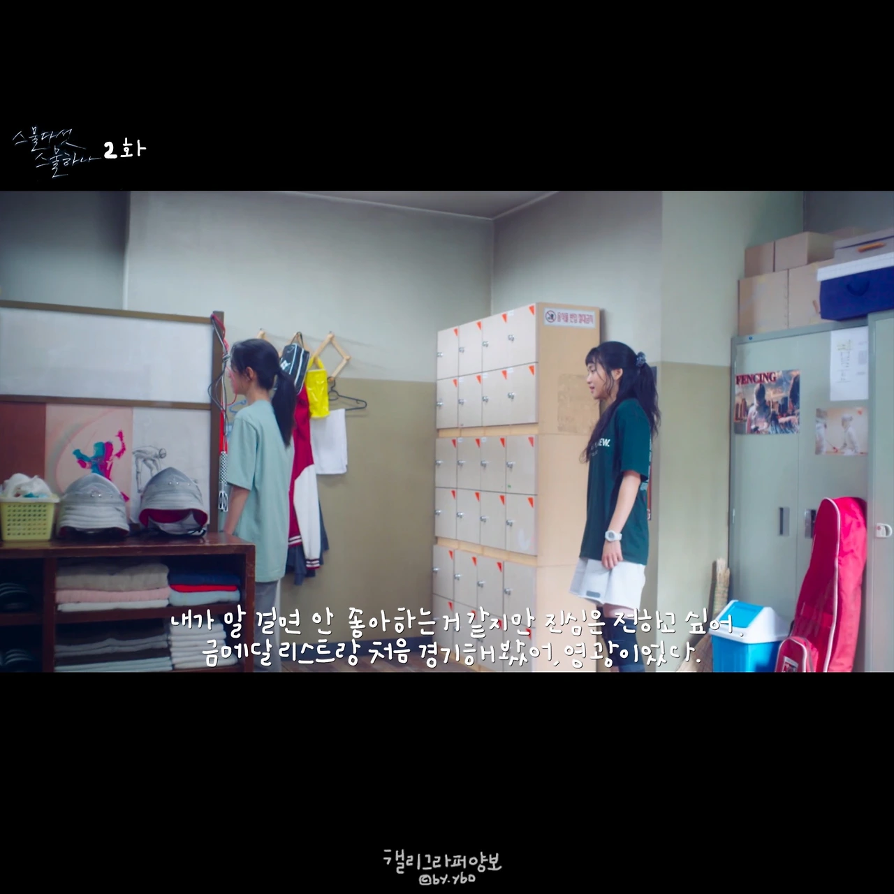 대사가 간결한데 빠르게 침투해 옆구리를 쿡 찌르거나 머리를 퉁-하고 치고 간다. 하나도 안 아파 보이는 펜싱 킬이 상처도 남길 정도라는데 … 이 드라마 대사가 꼭 그렇다. 계속 남아.. 맴돌아. 무언가 잘하는 하나가 있겠지, 스스로를 너무 후려치지 말자. 자괴감이 들고 질투심이 폭발하는 요즘 코치님의 대사는 나를 인간답게, 정신을 차리게 해 주었다.