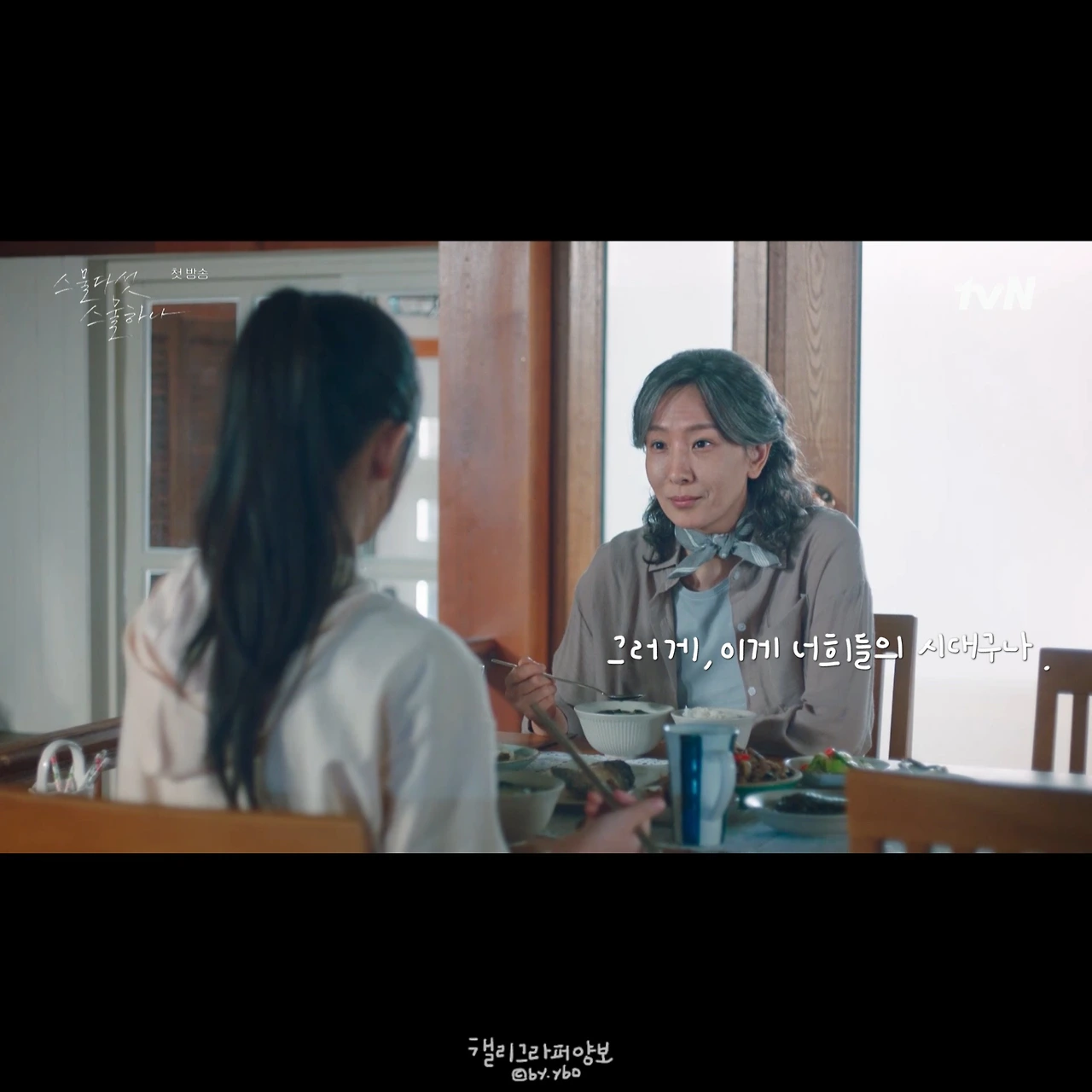마지막 대사를 끝으로 손녀는 엄마 방에서 옛날 일기장을 찾는다. 그렇게 세대가 거슬러 올라간다. 손녀의 세대에서 딸의 세대로. 이 감상을 쓰고 찾아보던 중 tvN 드라마 sns에 공개된 드라마 관전 포인트를 봤다. “우리 엄마, 엄마의 엄마, 그리고 나” (드라마 1화에서 자연스럽게 관전 포인트를 느끼게 한건 정말이지 연출과 필력, 연기 세 박자의 힘이겠지!! )