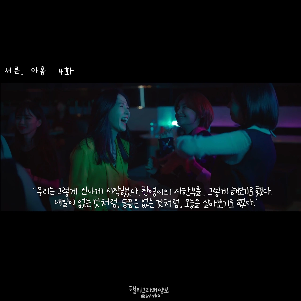 사실 드라마 <서른아홉>을 보며 ‘가족’이란 무엇이며, ‘가족’이 되어간다는 게 어떤 의미인지, 미조와 선우네 두 입양 가정과 가족 같다는 말로 부족한 세 사람의 우정을 보며 생각하게 된 것들도 있지만 이야기가 길어질 것 같아 다음 기회로 미루려 한다.