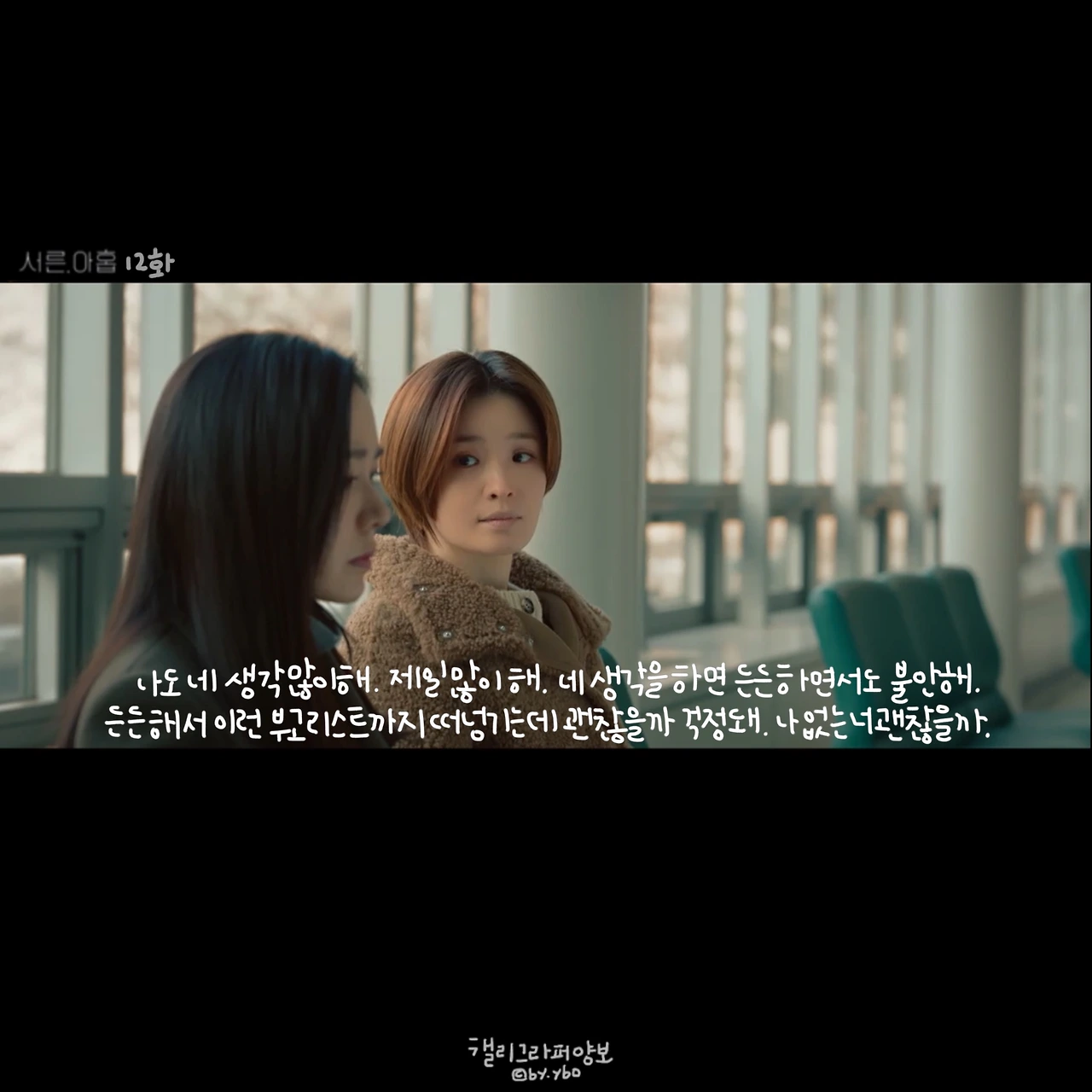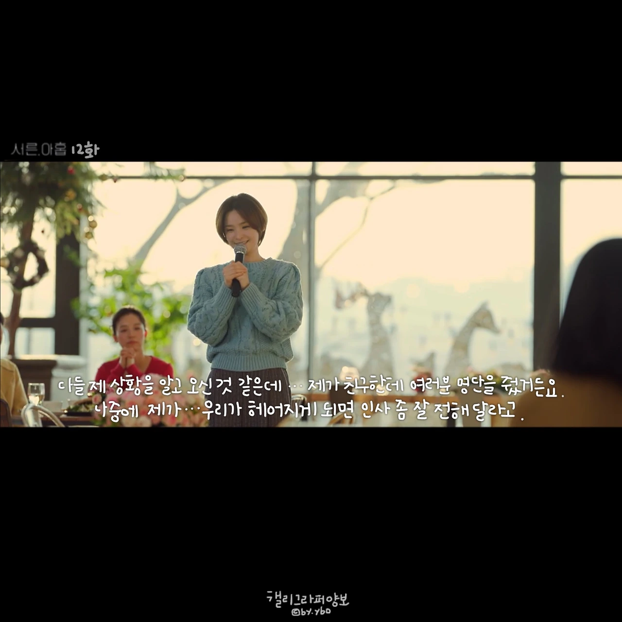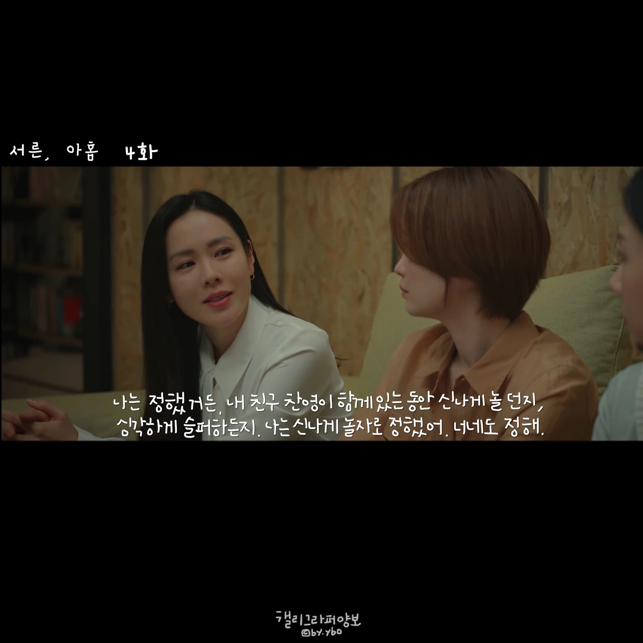 이 작품을 쓴 유영아 작가의 전작 드라마 <남자 친구(tvN, 2018)>를 이따금 다시 보는 건 쿠바의 풍경이 멋져서도 있지만, 수현과 진혁이 두 사람을 상처 주는 상황 속에서 서로를 지키는 말의 품격, 우아한 태도가 그리워서다. 입에서 단내가 날 정도로 많은 말을 하고, 때로는 원하지도 않는 말을 해야 하는 일상을 살며 우영아 작가가 그려낸 말과 태도는 보는 것만으로도 위로와 위안을 받는다. <서른아홉>에서도 그런 위로와 위안이 흐르고 있다. 내가 이 작품을 끝까지 볼 수 있었던 힘은 아마 이것이 아니었나 싶다.