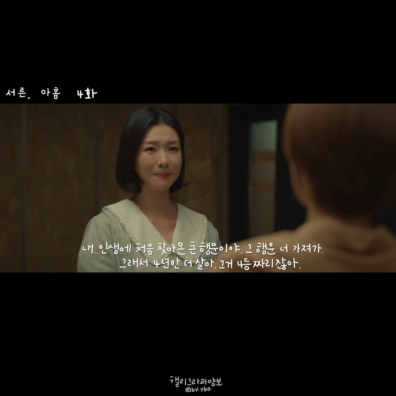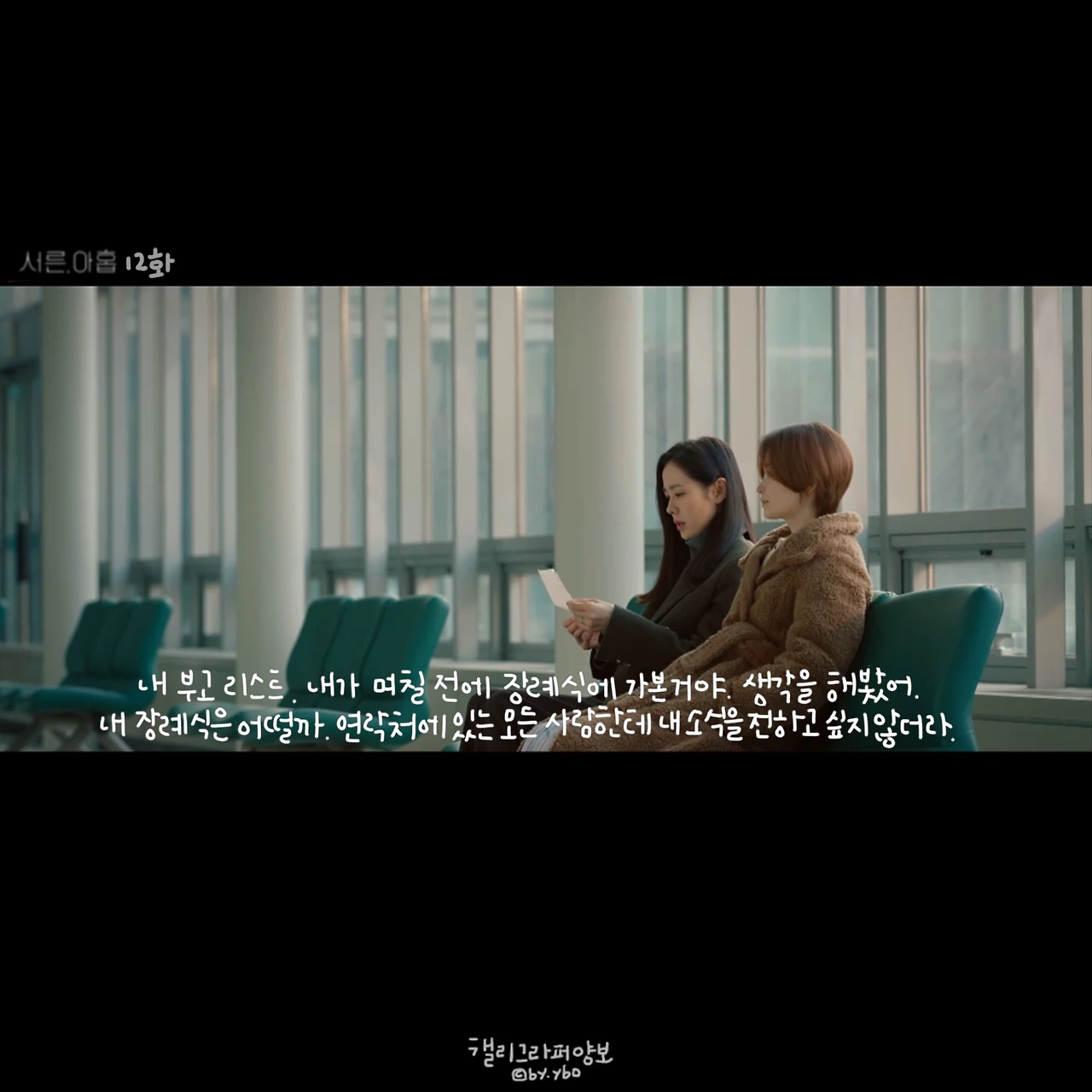 결국 살아간다는 건 반갑지 않은 손님을 맞이하는 일이겠지만, 죽음을 맞이하는 모습이나 그 여정을 이들처럼 서로를 위하며 따뜻하게, 품위를 잃지 않는 태도로 살아갈 수 있다면 좋겠다는 생각을 했다. 사는 것만큼 죽음을 준비하는 것에 대해서도 생각하게 해 주었다는 점에서 묵직한 마음을 갖게 하지만 그래서 나이가 들수록 더 생각나는 드라마가 될 것 같다.