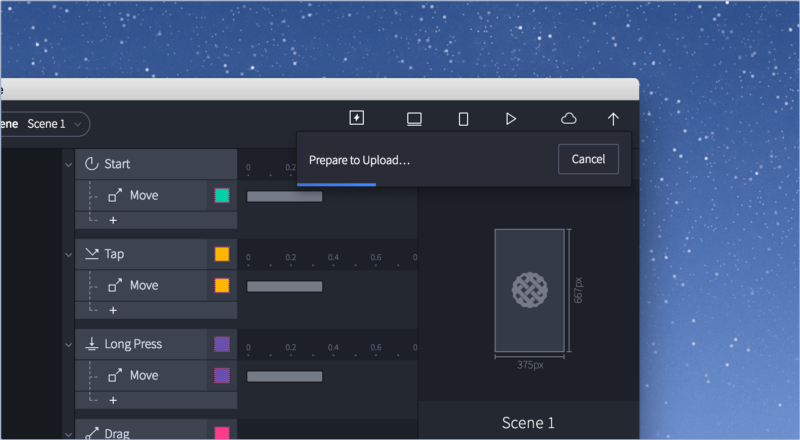 작업한 프로토타입을 직장 동료나 광고주, 일반 사용자들에게 이해시켜야 할 때, 더 이상 직접 만나서 설명해 줘야 할 필요가 없습니다. ProtoPie Cloud를 이용하면 프로토타입을 업로드하여 다른 사람들에게 쉽게 공유할 수 있기 때문이죠.