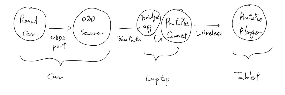 2. OBD 스캐너는 ProtoPie Connect가 실행되고 있는 노트북에 이 신호들을 전송합니다.
