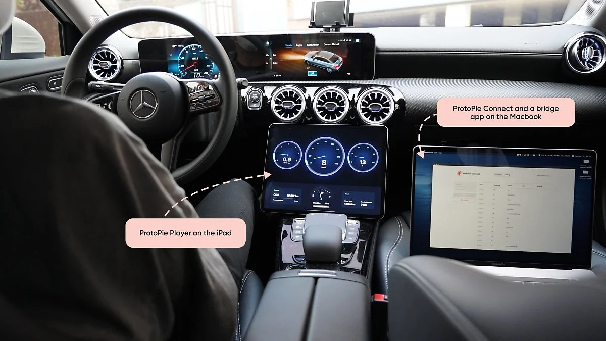 Automotive Solution의 다양하고 놀라운 이용 사례 중, 최근 독일의 한 고객이 실제 차량과 통합된 새로운 인터랙션 디자인을 테스트하기 위해 ProtoPie로 어떻게 실시간 데이터를 사용하였는지 보여주었습니다.