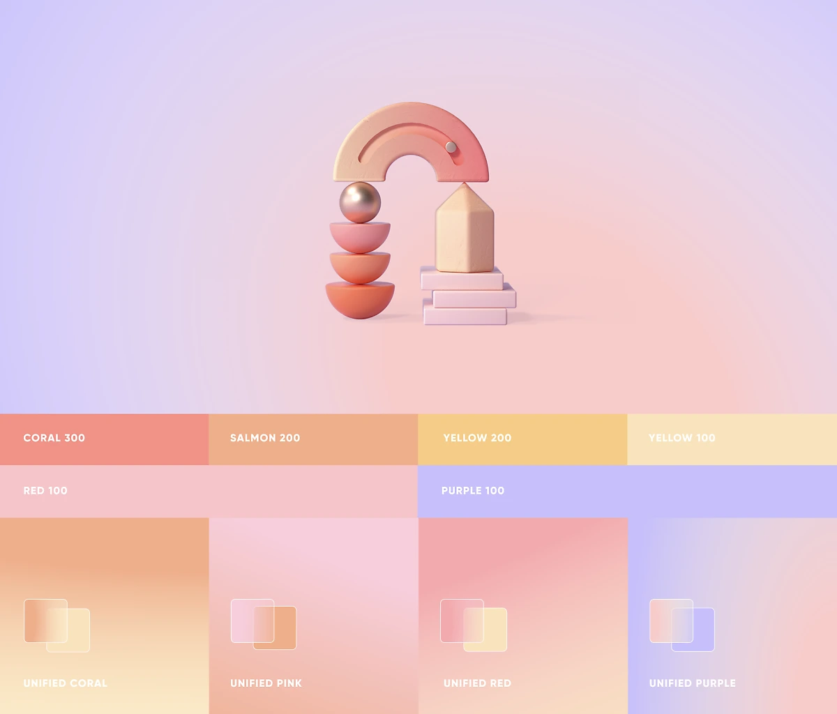 이와 더불어 ProtoPie만의 Unified Harmony Color System은 두가지 이상의 컬러와 그라디언트의 조합으로 어디에든 부드럽게 스며들어 어울어질 수 있도록 만들었습니다. Base Color와 Overlay Color로 이루어진 두 레이어가 겹치면서 섞이는 Unified Color는 브랜드와 프로덕트 사이의 균형과 조화를 이루며, 유저로 하여금 디자인적인 영감을 불러 일으키고 ProtoPie의 친근한 무드를 느낄 수 있도록 만들어졌습니다.