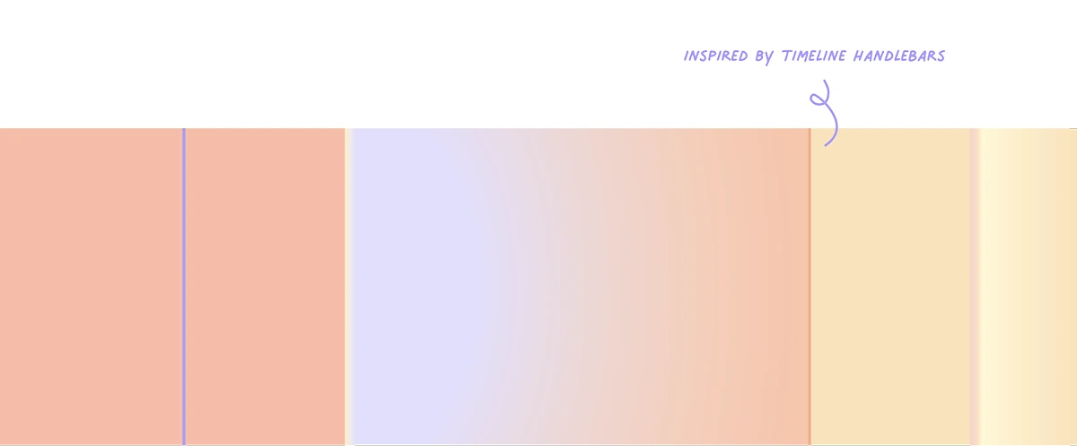 인터랙션 블록의 듀레이션을 조정하는 타임라인 핸들바 또한 ProtoPie만이 가지고 있는 고유한 개념입니다. 우리는 이러한 개념으로부터 차용해 라인 디자인 모티프를 뽑아냈습니다. 인터랙션이 진행되는 과정을 표현한 타임라인 핸들바 모티프는 '작은 움직임을 더해 살아있게 만든다'는 ProtoPie의 디자인 원칙을 따라 디자인한 결과물입니다. 아래 예시와 같이 두 가지 이상의 라인 스타일을 한 프레임에 사용할 수 있습니다.