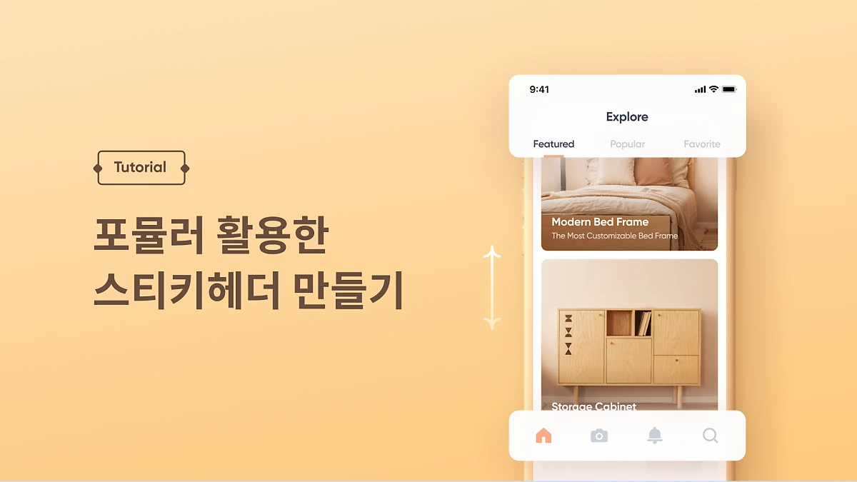 많은 모바일 앱이 스티키헤더를 사용하고 있습니다. 예를 들어, 웹 브라우저에서는 아래로 스크롤 할 때 헤더와 주변 버튼들이 사라졌다가, 위로 스크롤하면 다시 보이게 되는 것과 같은데요. 스티키헤더를 사용하면 사용자는 사진 피드나 흥미로운 블로그 포스트, 쇼핑몰의 상품 목록에서까지 페이지에 완전히 몰입할 수 있게됩니다.