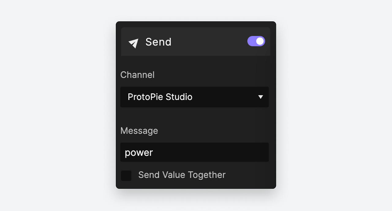 ProtoPie Studio의 Send 기능을 사용하여 메시지를 보냅니다.