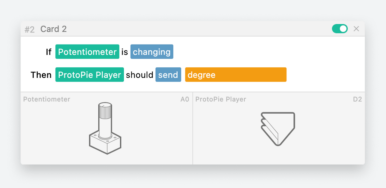 예를 들어, 포텐셔미터를 회전하려면 다음 세부 정보와 함께 blokdots에서 ProtoPie로 메시지를 보내야 합니다.