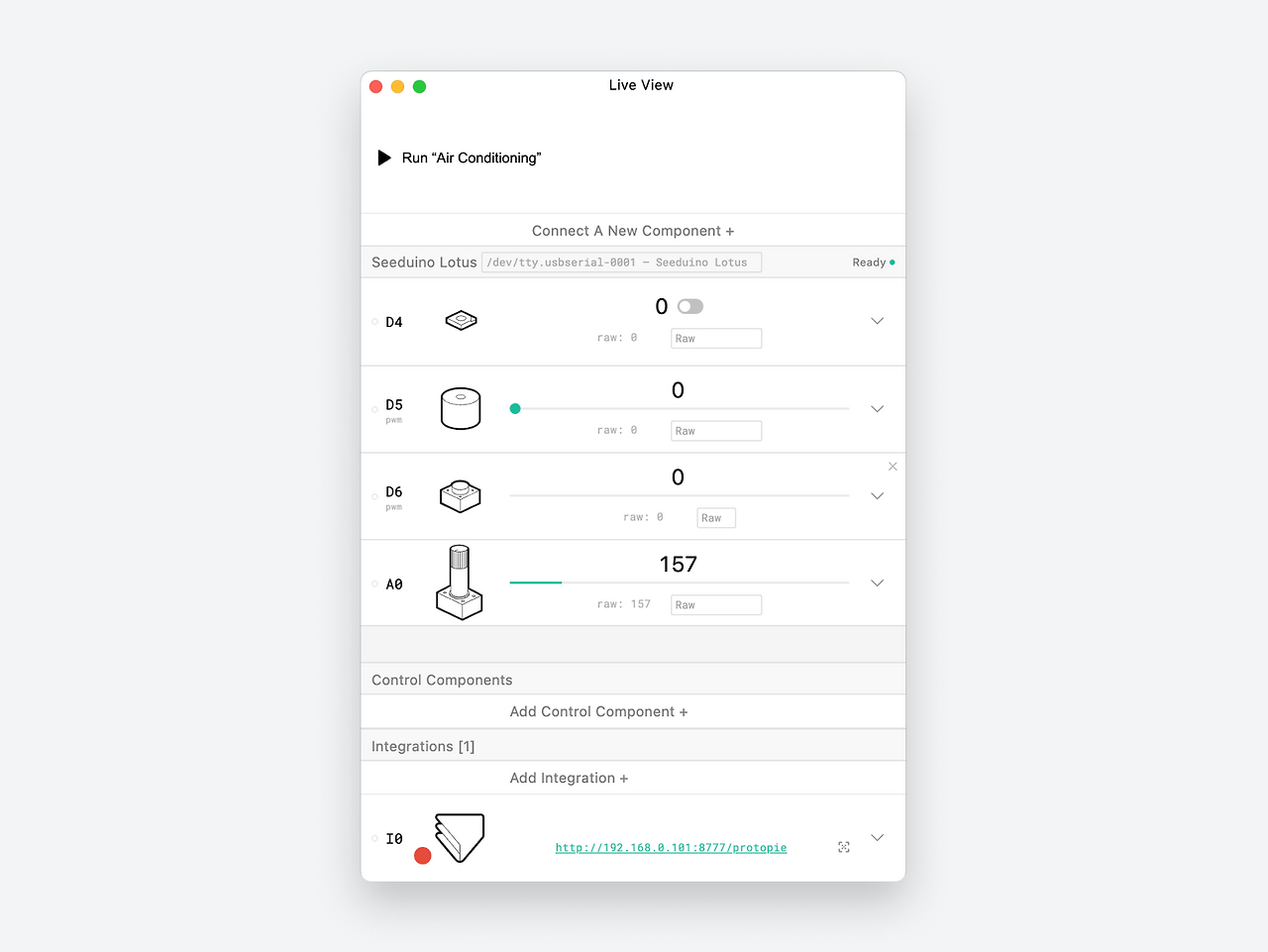 ▶ 그러나 최종 인터랙션은 ProtoPie Player와 아두이노 사이에서 발생합니다.