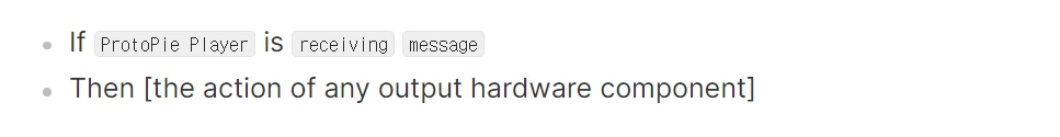 Protopie에서 메시지를 수신하려면 아래 이미지와 같이 Receive trigger를 사용하세요.