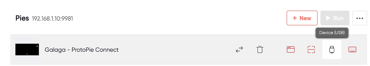 4. New 버튼을 클릭하여 Pie 파일을 ProtoPie Connect에 업로드합니다.