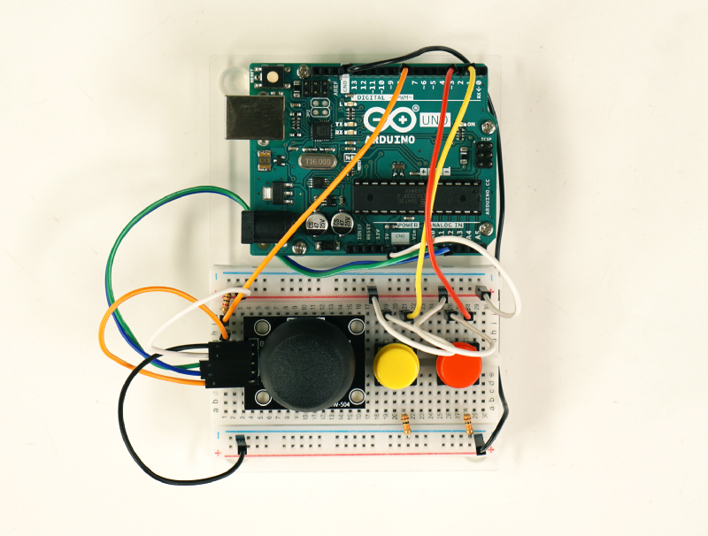 USB 케이블을 통해 아두이노 보드를 컴퓨터에 연결한 후, 이 스케치 (아두이노 보드에서 실행되는 코드)를 보드에 업로드합니다. 시작하기 전, 먼저 아두이노를 더 잘 이해하고 싶다면 아두이노 우노(영문)에 대해 자세히 알아보세요.