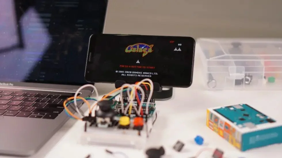 이번 예시에서는, 추억의 게임 중 하나인 갤러가 (Galaga)(영문)의 프로토타입과 DIY 아두이노 게임 패드를 사용하여 위 셋업을 직접 구축하는 방법에 대해 설명해 보겠습니다.