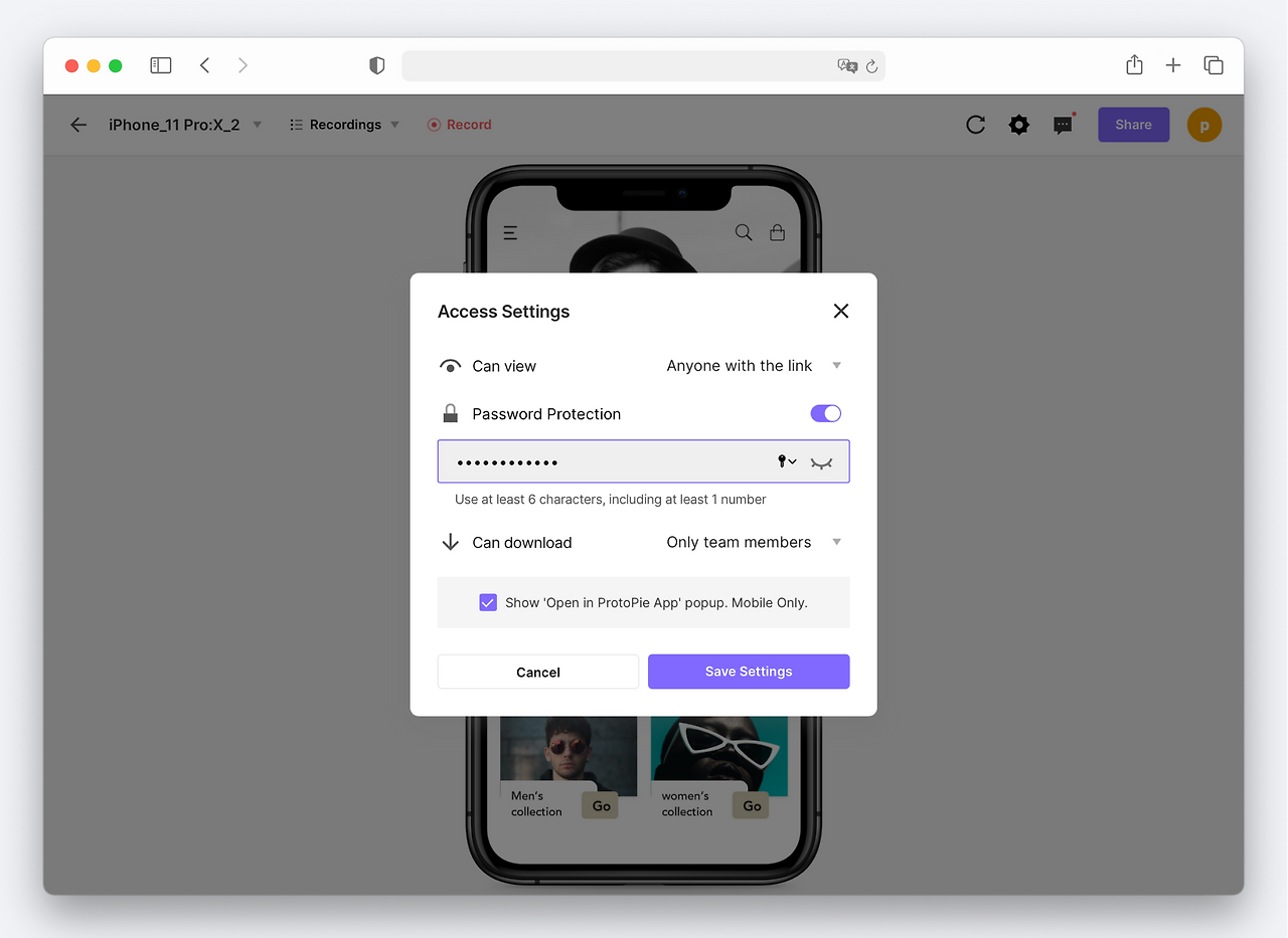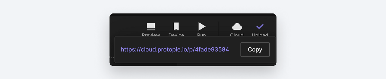 ProtoPie Cloud에서 Pie를 엽니다. 업로드가 완료되면 Studio에서 제공하는 링크를 클릭하면 됩니다.