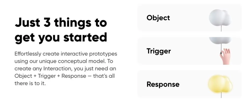 ProtoPie 홈페이지에서는 Object, Trigger, Response 이 세 가지만 알면 ProtoPie를 시작할 수 있다고 나와 있습니다. 오늘 리뷰는 ProtoPie가 얼마나 쉬운지, 초기 허들과 접근성에 대해 다루어 보겠습니다.