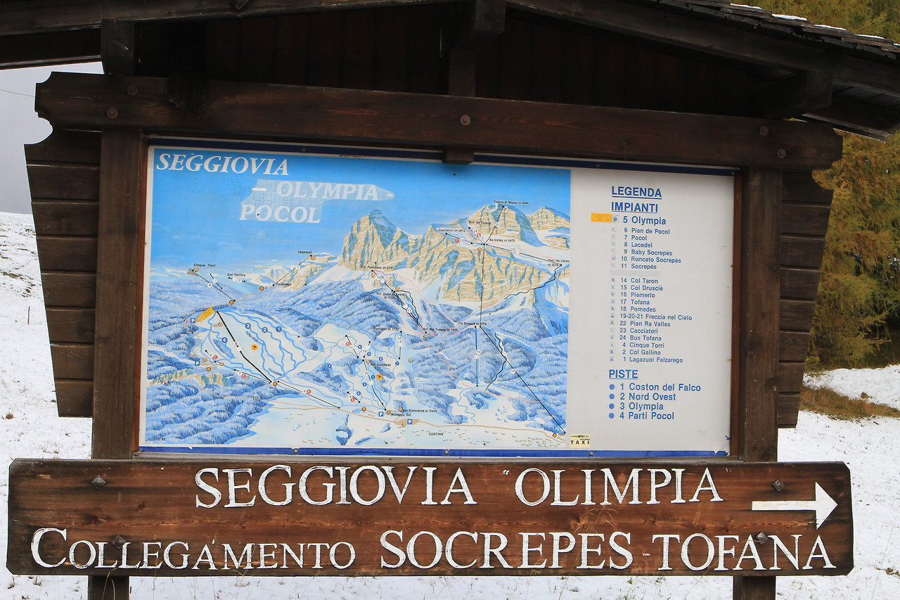 올림피아 스키리프트 안내판 돌로미티와 친퀘 데레 등등 코르티나 지역은 수많은 스키장이 있다
