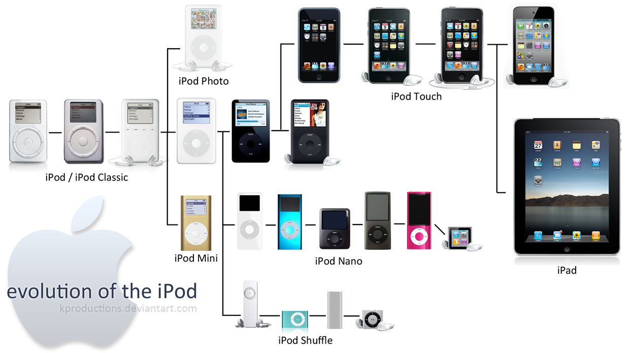 MP3시장은 'USB 메모리 형태의 플레이어' 와 아이팟과같이 'BAR형식' 의 플레이어로 양분화되었다. 전자는 휴대와 충전, 파일 넣고 지우기의 편의성 면에서 강점이 있었고 (보통 저렴했다), 후자는 큰 용량과 액정 그리고 기기로서의 무게감에 강점이 있었다. 나는 삼성전자의 YEPP U3모델을 수년동안 사용했는데 단점이라면 너무 작아서 주머니에서 빠지거나 어디에 있는지 모르는 일이 잦았던 기억이 있다. 실제로 2회나 잃어버려 똑같은 제품을 2번 산 경험이 있으니 말이다. 아이팟에 대한 이야기는 사실 담을 엄두가 안나 아래의 사진으로 대체하고 날로 먹을려고 한다.