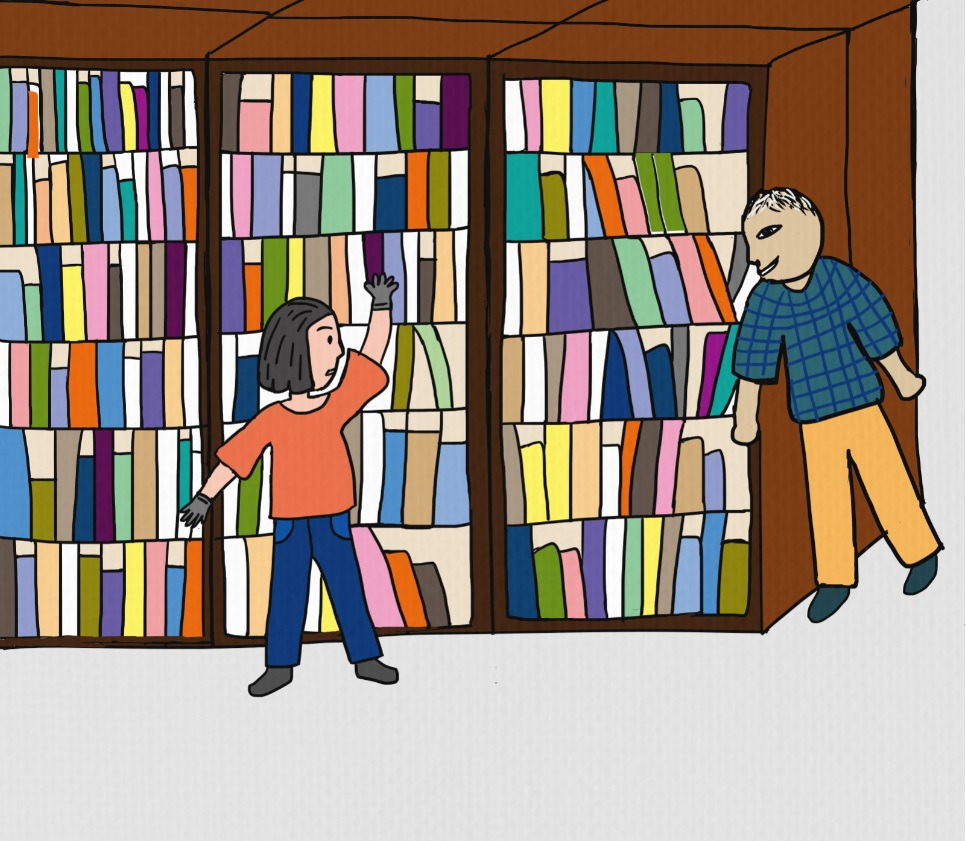 헉! 도서관에 저런 사람이 있다니. 그때부터 그 사람은 나에게 각인되었다. 다만 내가 아동 자료실 근무자라 마주칠 일이 없었다. 그래도 누군지 모르니, 자료실과 연결된 복도를 다닐 때 경계하며 다녀야겠다고 굳게 마음을 먹었다. 특히 화장실을 갈 때 더더욱 주위를 살폈다. 그러나 3개월 후, 도서관 내에서 직원 재배치가 이루어지면서 나는 종합자료실에서 근무를 하게 되었다. 무엇보다 각인된 사람을 마주할 수 있어서 걱정이 앞섰다.