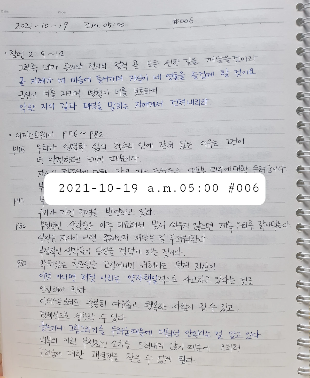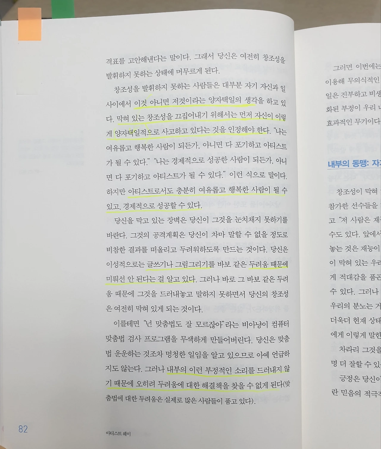 당신은 글쓰기나 그림 그리기를 두려움 때문에 미뤄선 안된다는 걸 알고 있다.