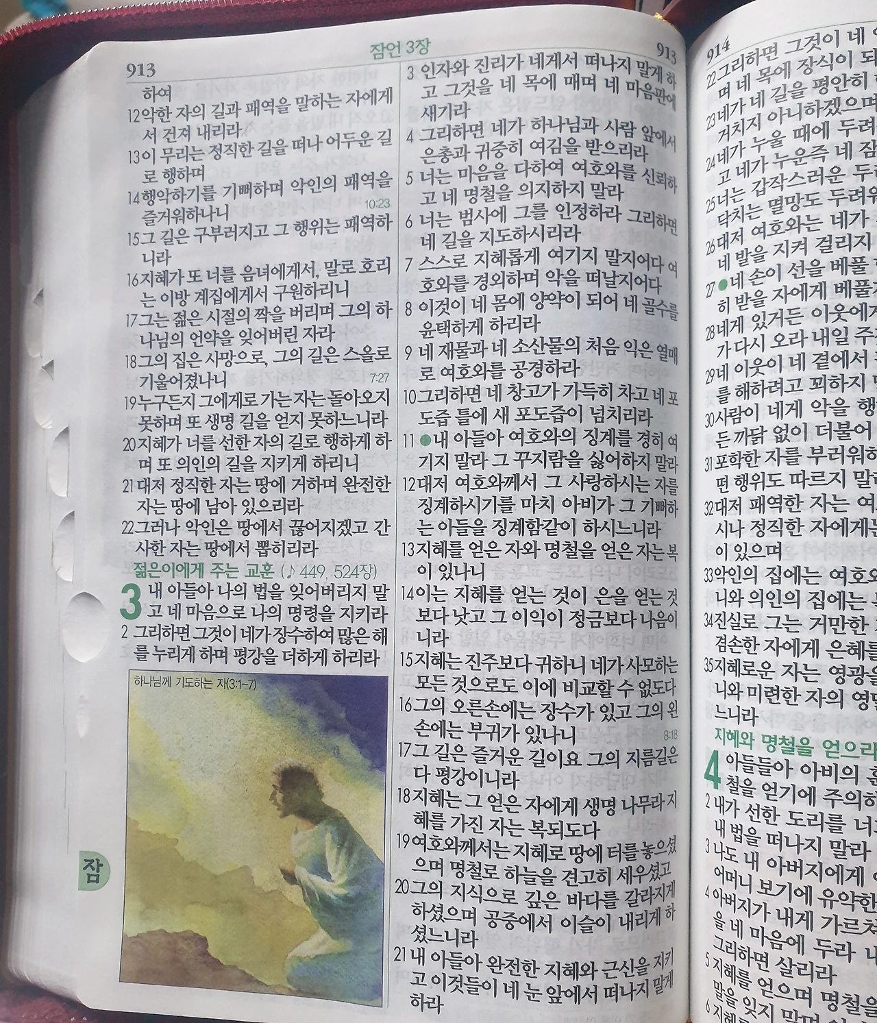 너는 마음을 다하여 여호와를 신뢰하고 네 명철을 의지하지 말라. 너는 범사에 그를 인정하라 그리하면 네 길을 지도하시리라. 스스로 지혜롭게 여기지 말지어다. 여호와를 경외하며 악을 떠날지어다. 이것이 네 몸에 양약이 되어 네 골수를 윤택하게 하리라.