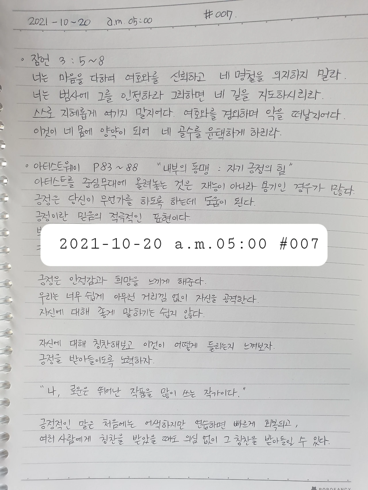 부정적인 자신과의 대화에서 10분의 1만 긍정적으로 얘기할 수 있다면 커다란 변화를 느낄 수 있을 것이다.
