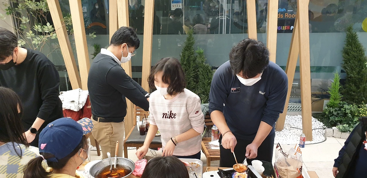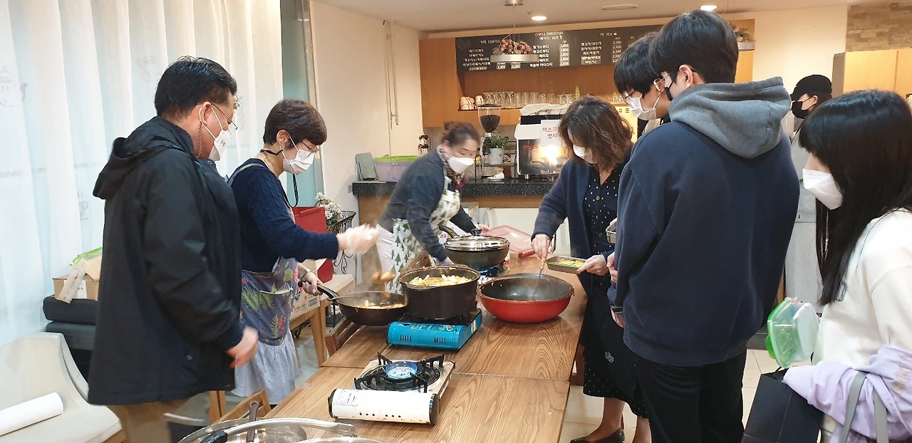 우리 아파트는 주민을 위한 카페테리아가 설치되어있습니다. 커피와 차를 마실 수 없어서 텀블러에 갓 볶은 신선한 커피를 담아드리고, 아이들을 위해 아이스티를 나눠주었습니다. 함께하는 기쁨이 있어 오랜만에 코로나를 잊고 즐거운 한 때를 보낼 수 있었습니다.