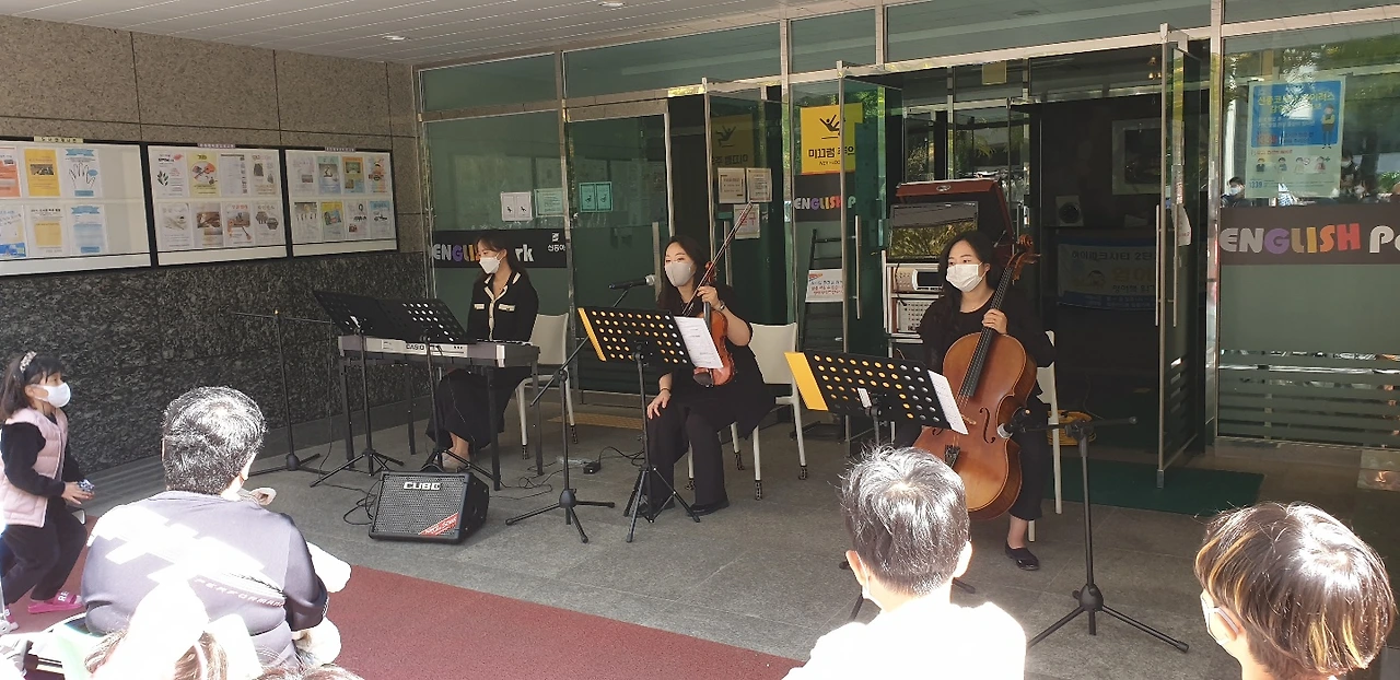 재능기부 연주회도 있었습니다. 현악 3중주로 아름다운 음악을 들려주셔서 마을 축제가 더욱 풍성해졌습니다. 오전 10시부터 오후 2시까지 4시간 동안 진행된 행사였지만 여럿이 생각을 모아 짜임새 있게 준비하고 동선이 얽히지 않도록 준비한 덕분에 온 마을이 흥겨운 잔치로 마무리할 수 있었습니다.