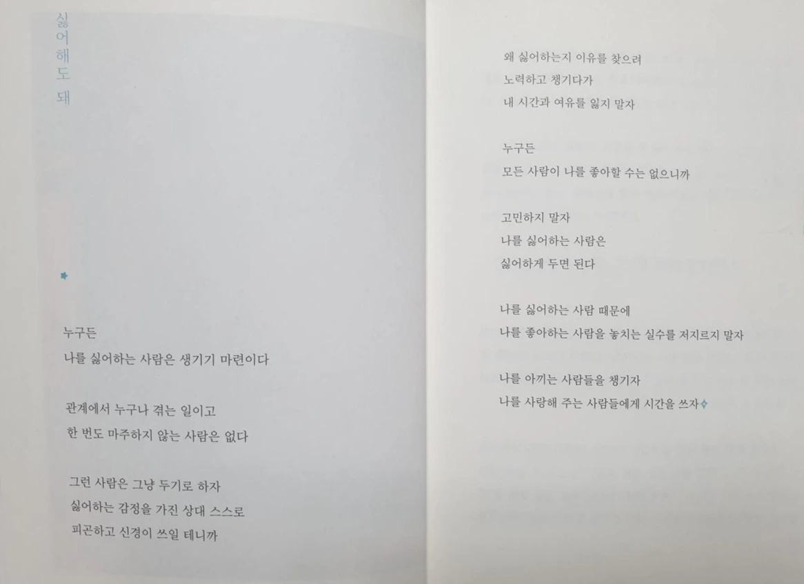 주어 새벽 필사할 '시'는 "싫어해도 돼!"입니다.