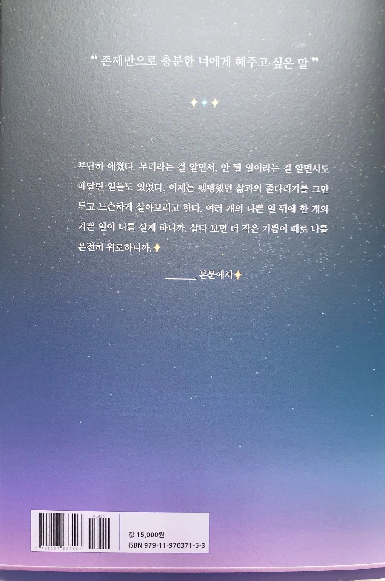책 표지만큼 작가의 글이 빛나는 책입니다. 따뜻하게 전해지는 감성적인 글귀가 잔잔하게 스며들어 마음 깊이 여운으로 남는 에세이입니다. [작은 별이지만 빛나고 있어]는 누구나 편안하게 읽을 수 있는