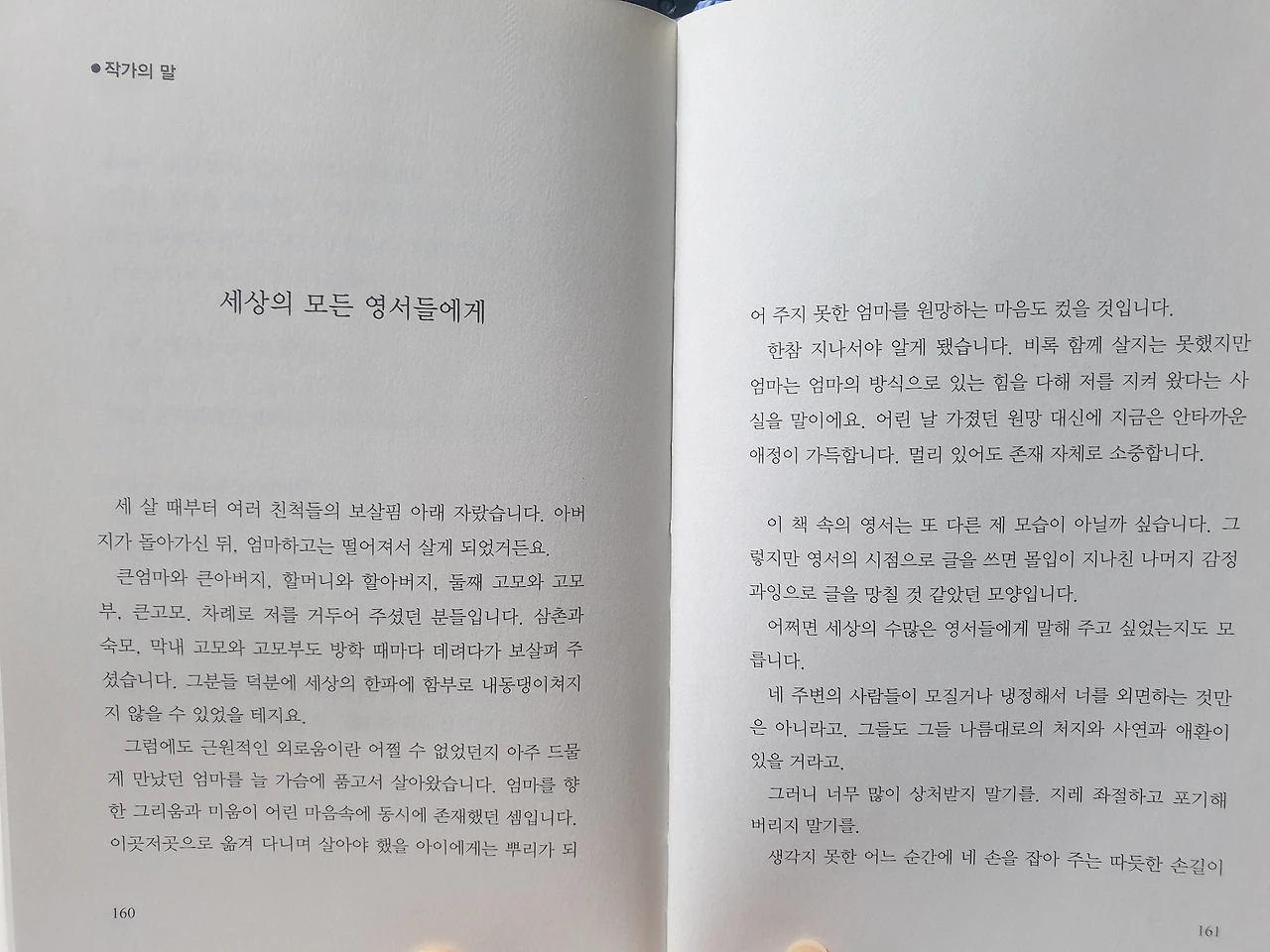 어쩌면 세상의 수많은 영서들에게 말해주고 싶었을지도 모른다고 작가는 이야기합니다.