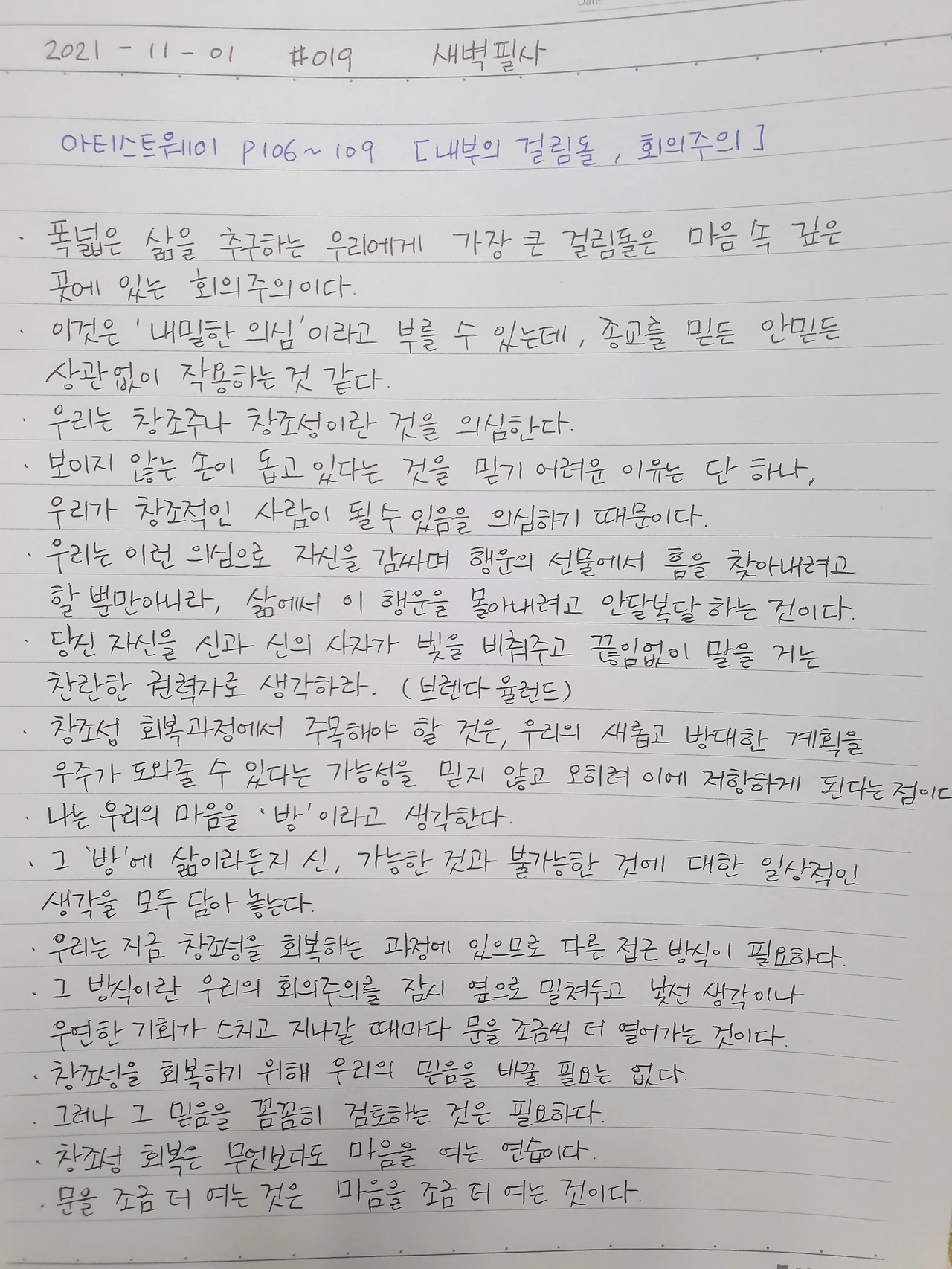 2021-11-01/#019 [모닝 페이지] 새벽 필사