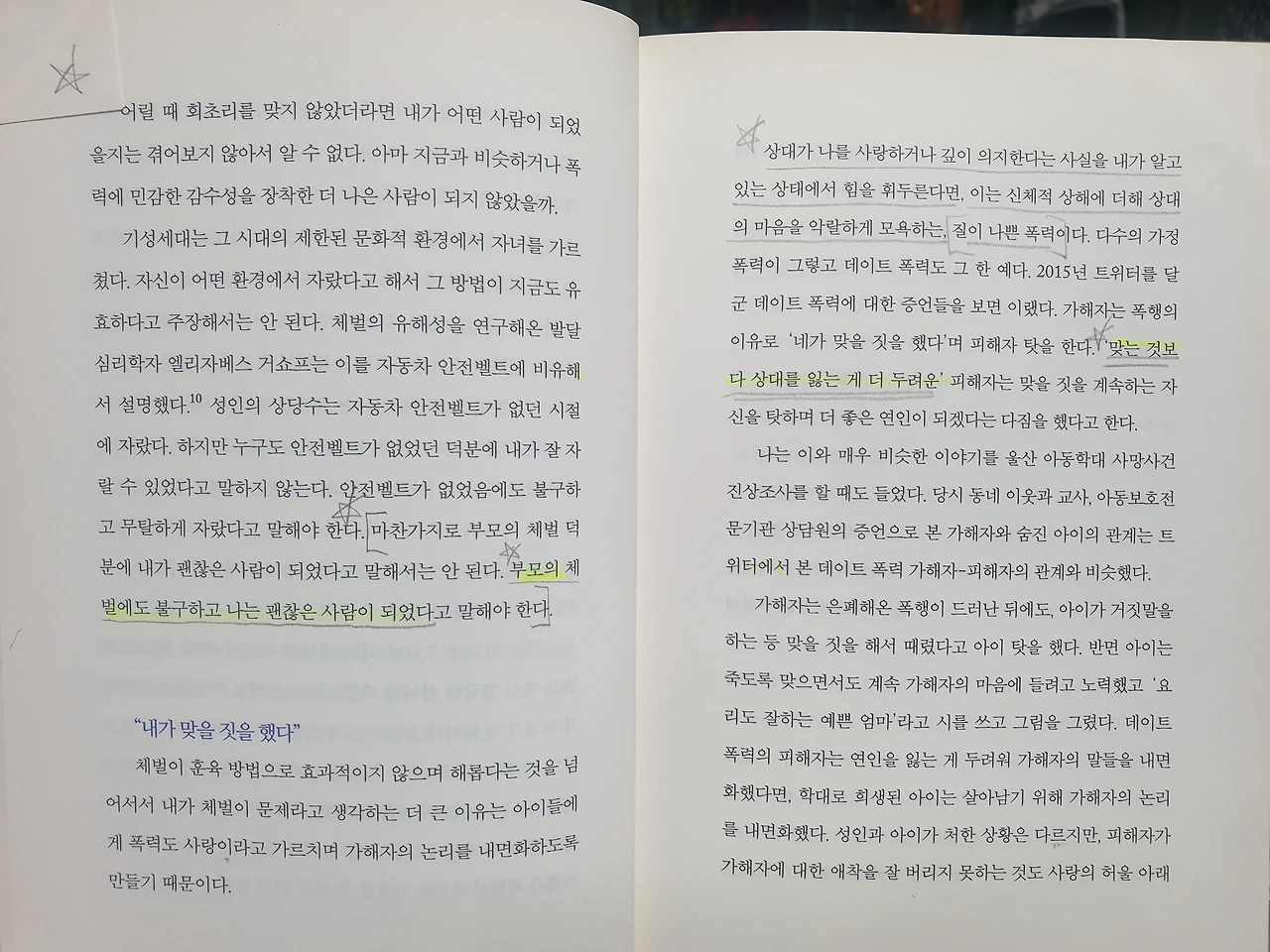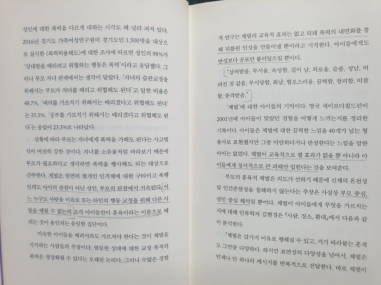부모의 체벌 덕분에 내가 괜찮은 사람이 되었다고 말해서는 안 된다. 부모의 체벌에도 불구하고 나는 괜찮은 사람이 되었다고 말해야 한다.