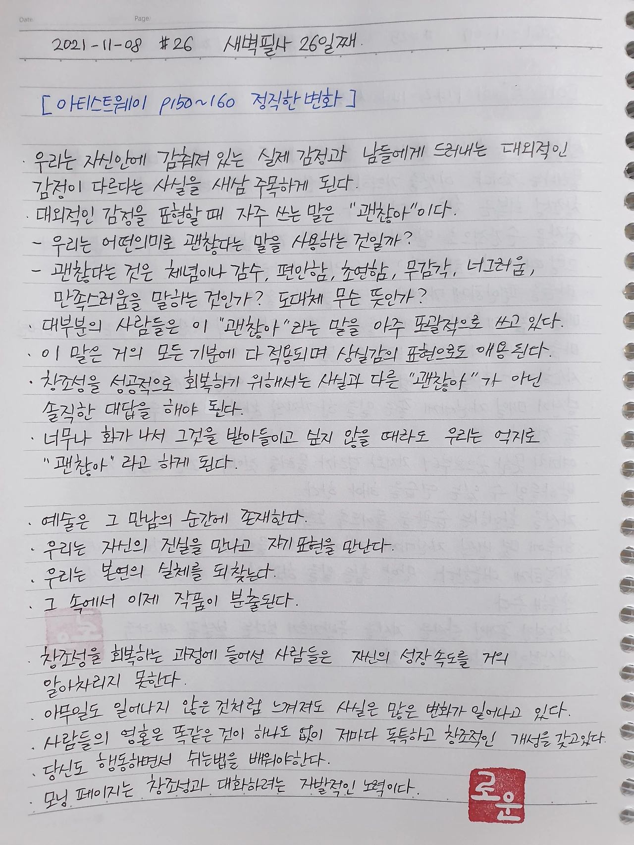 모닝 페이지는 창조성과 대화하려는 자발적인 노력이다.