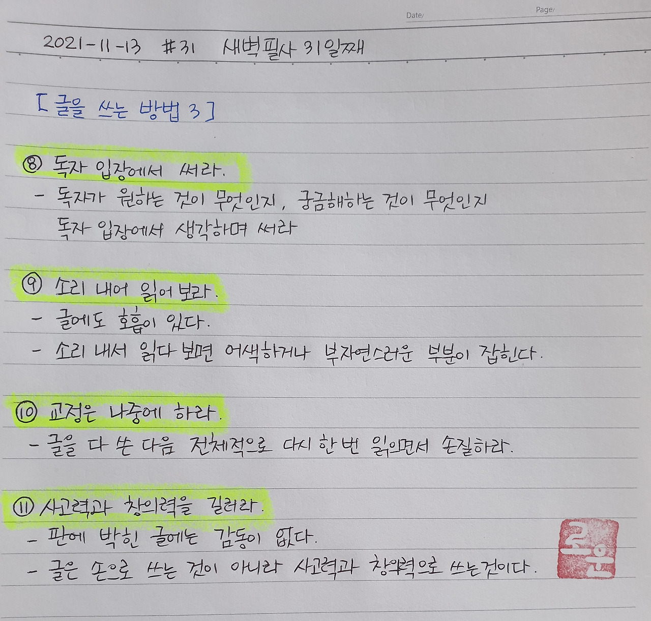 글은 손으로 쓰는 것이 아니라 사고력과 창의력으로 쓰는 것이다.